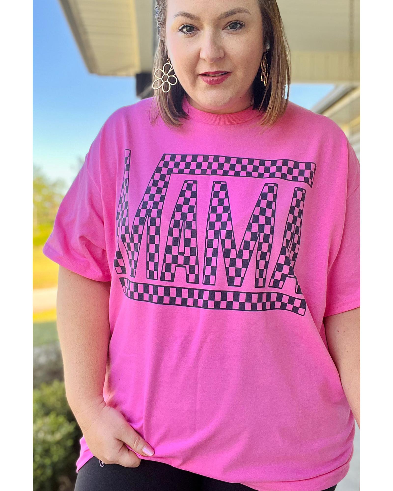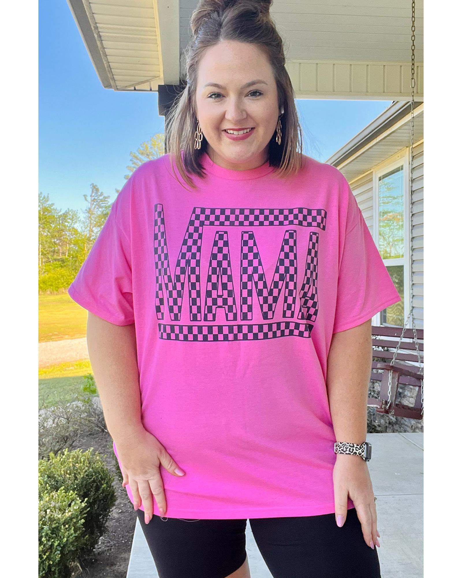 Bright Pink Checker MAMA Letter Printed Graphic Plus Size T Shirt – 1X