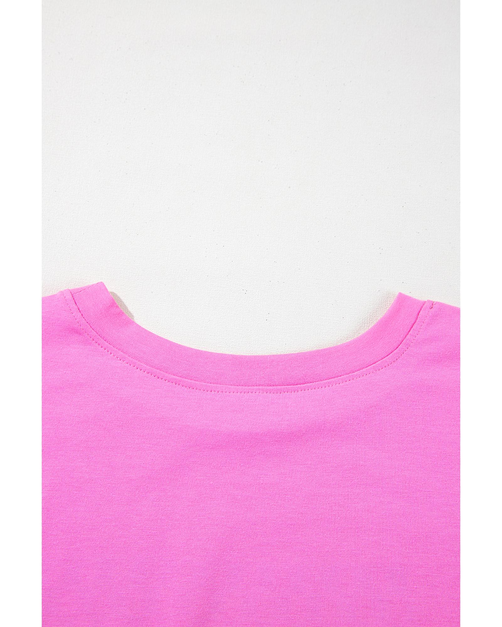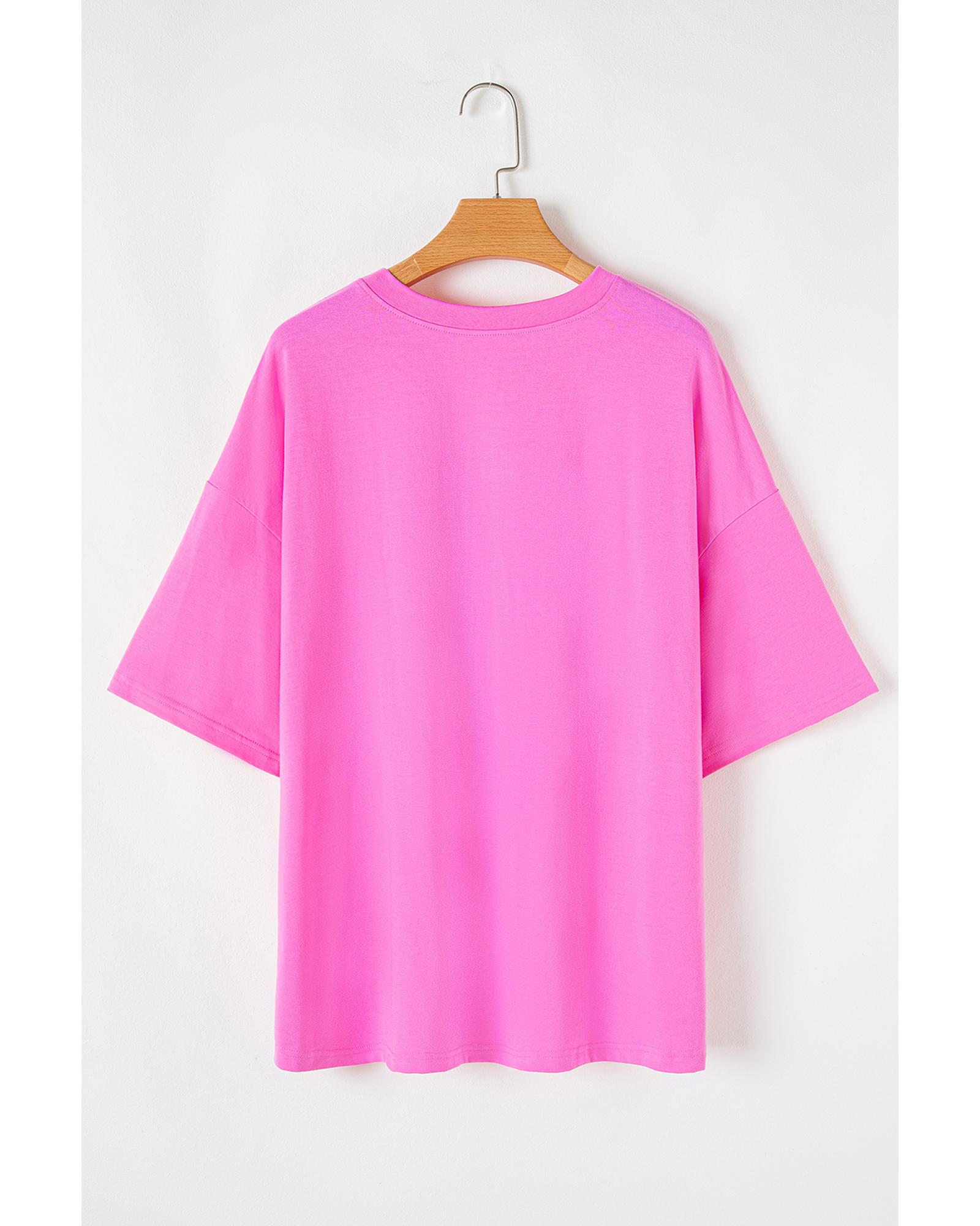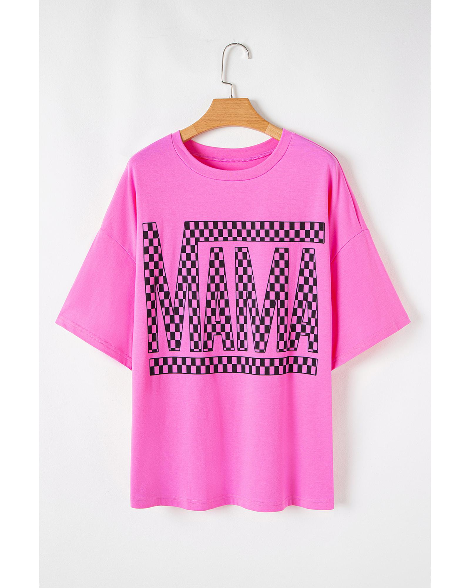 Bright Pink Checker MAMA Letter Printed Graphic Plus Size T Shirt - 2X