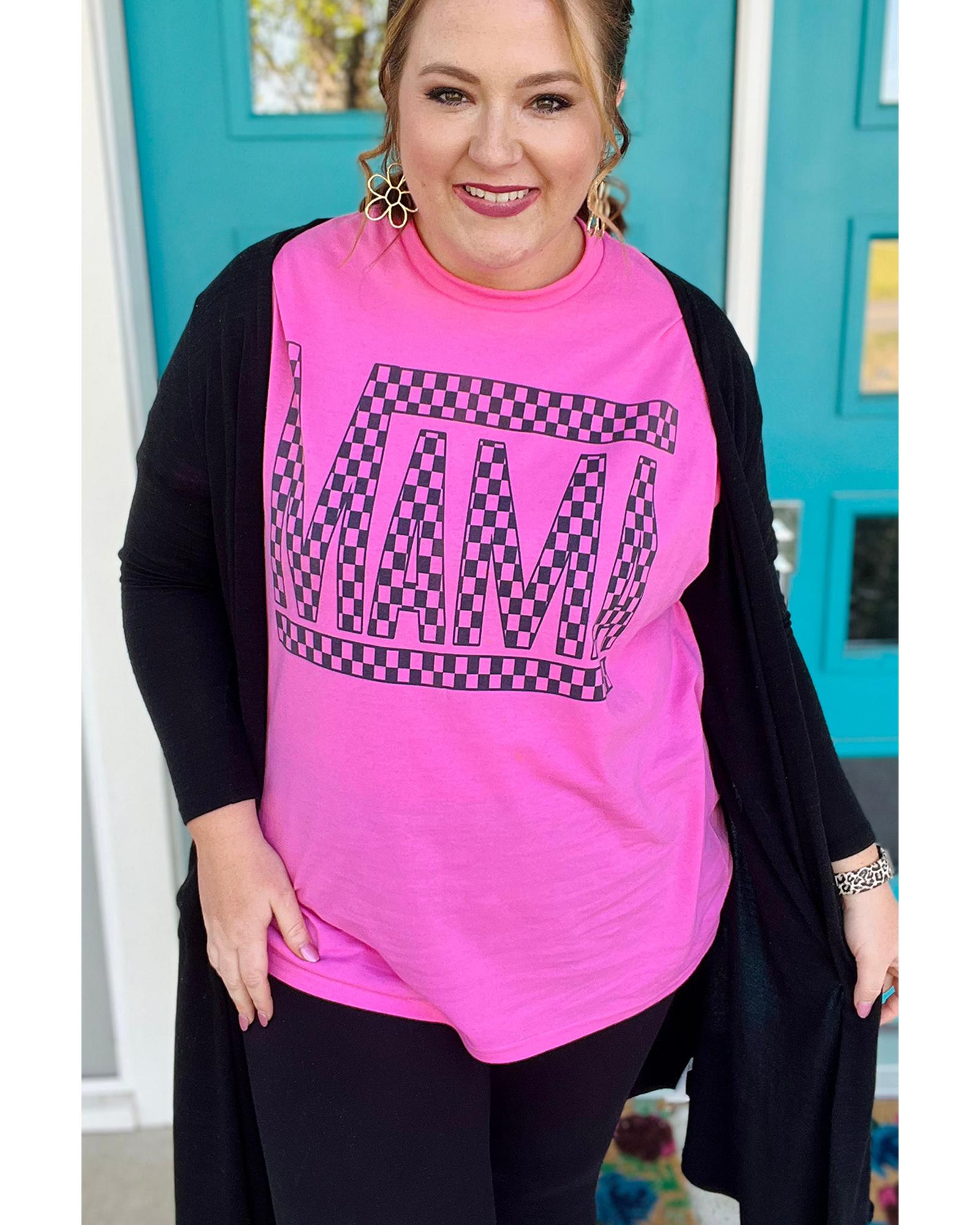 Bright Pink Checker MAMA Letter Printed Graphic Plus Size T Shirt – 2X