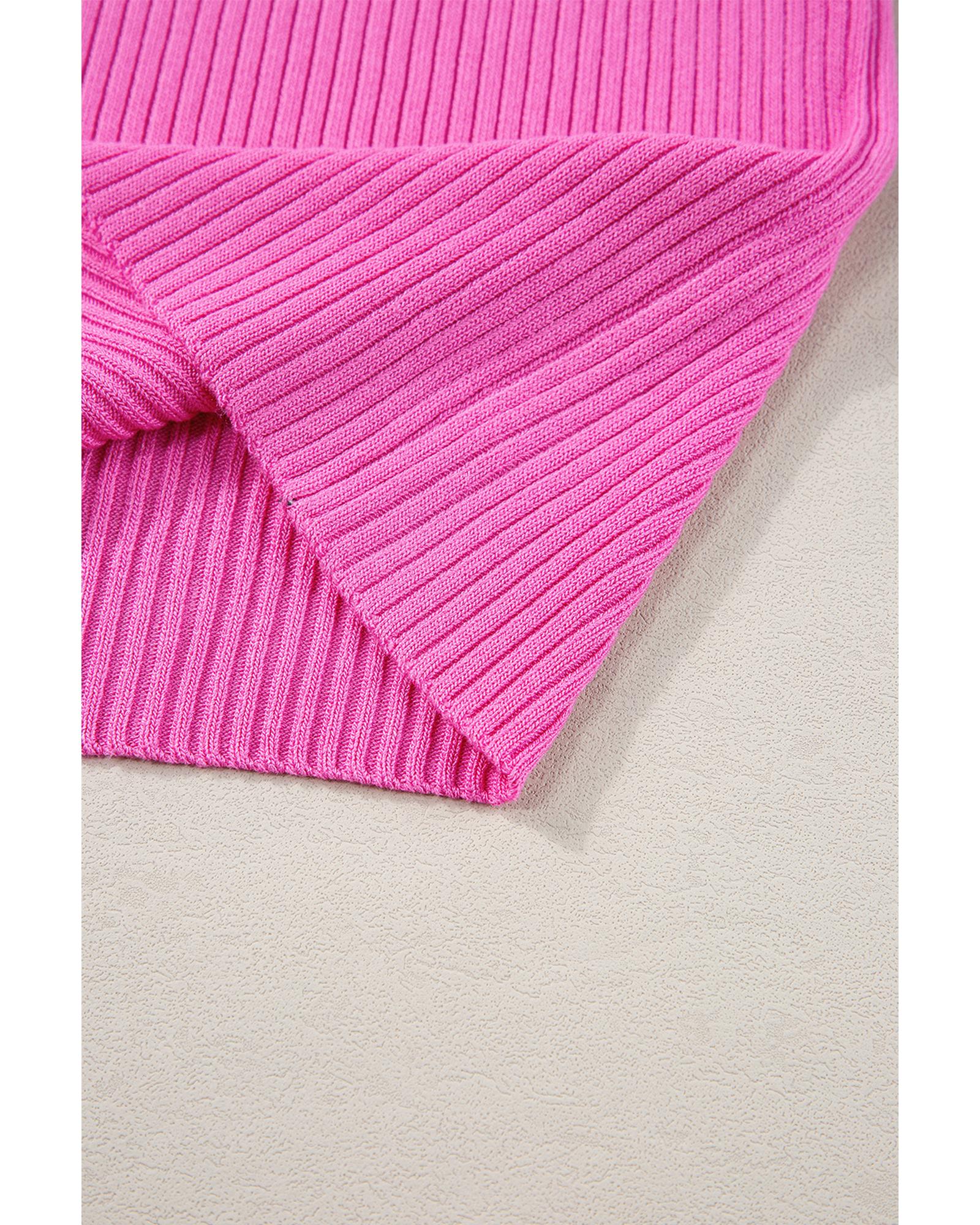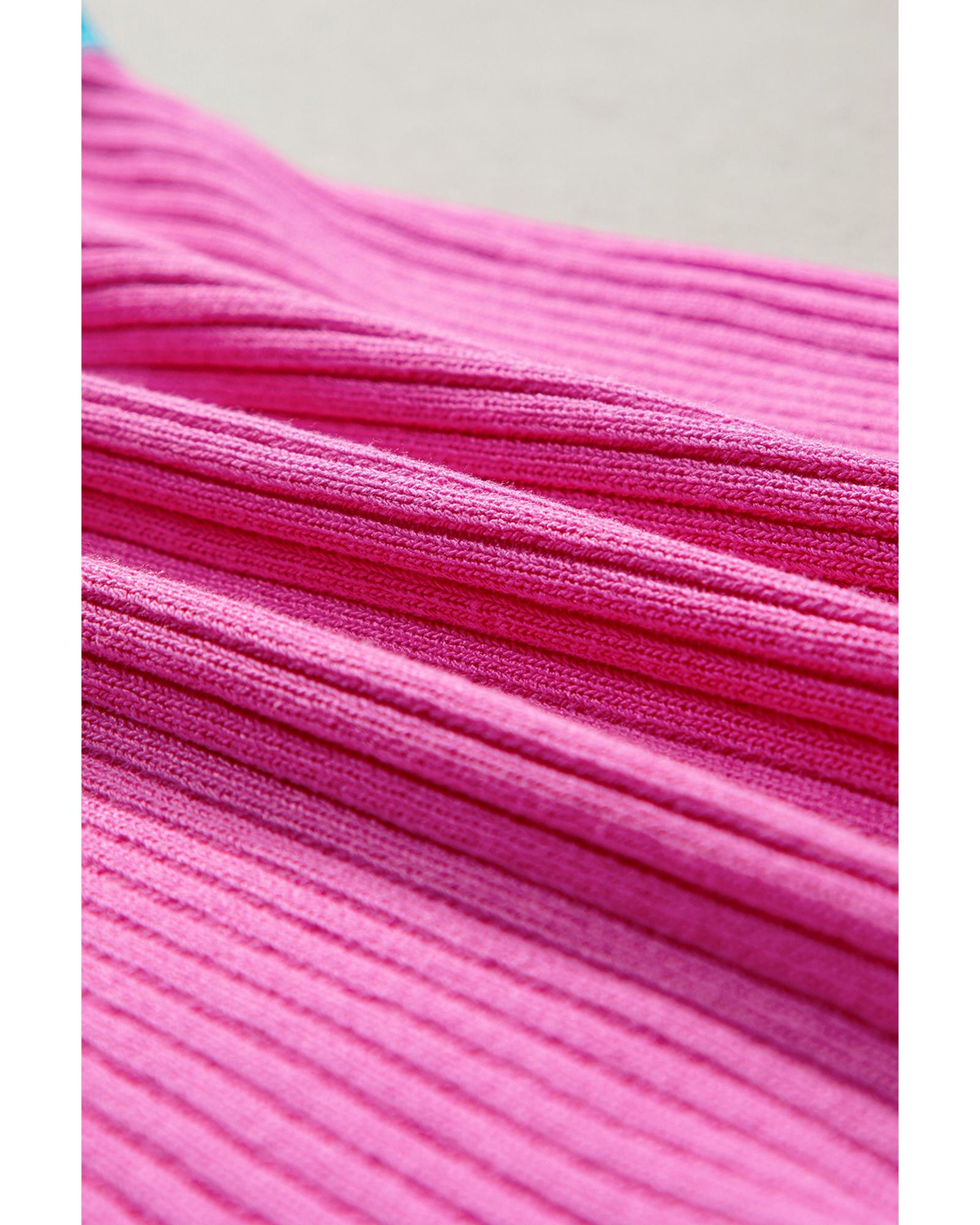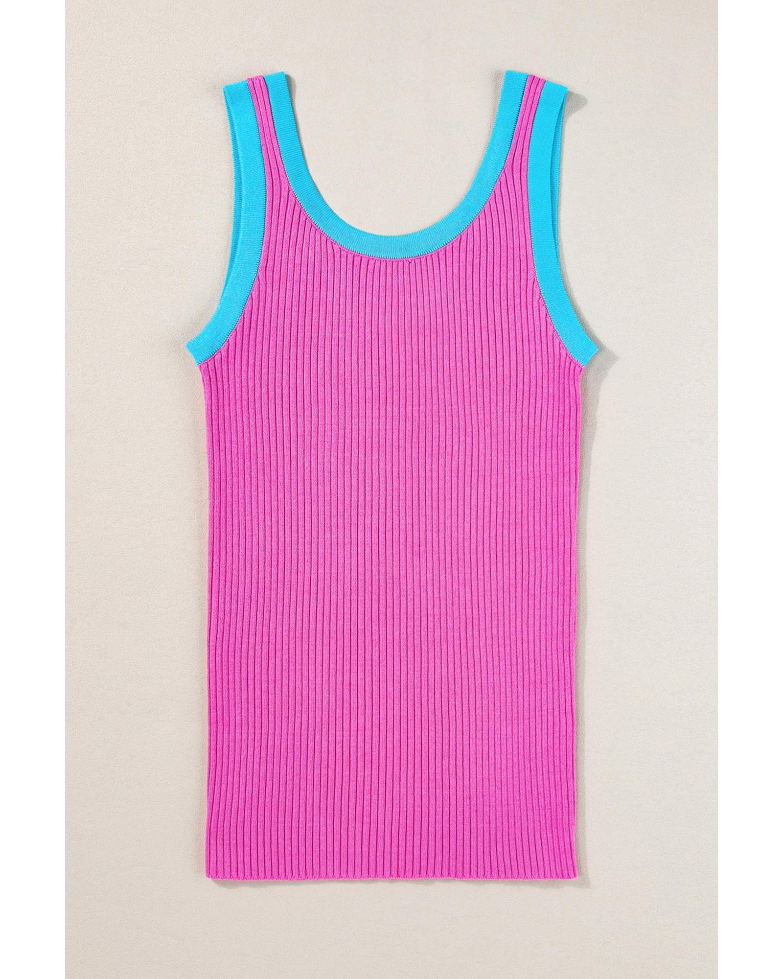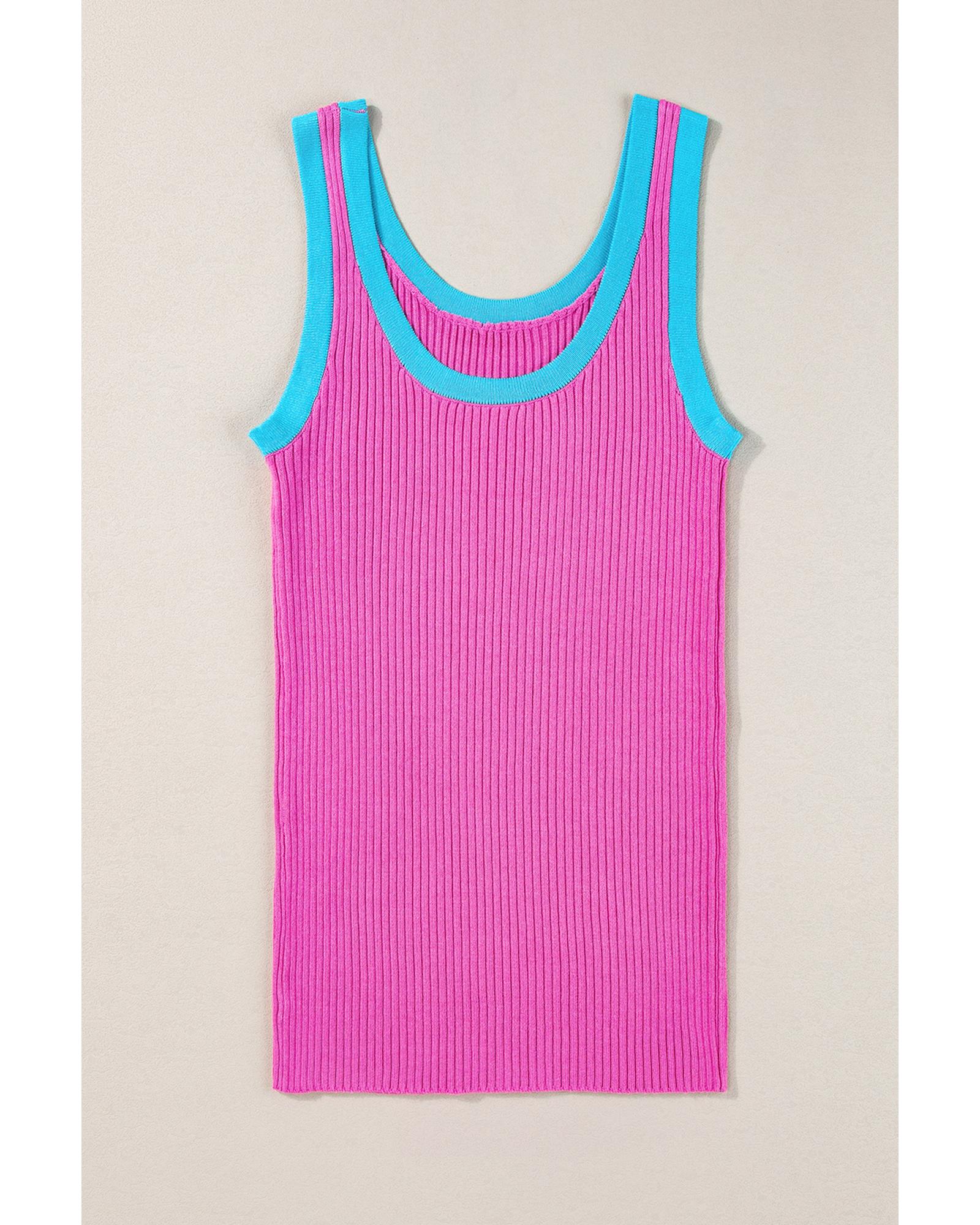 Bright Pink Colorblock Edge Ribbed Knit U Neck Tank Top – L