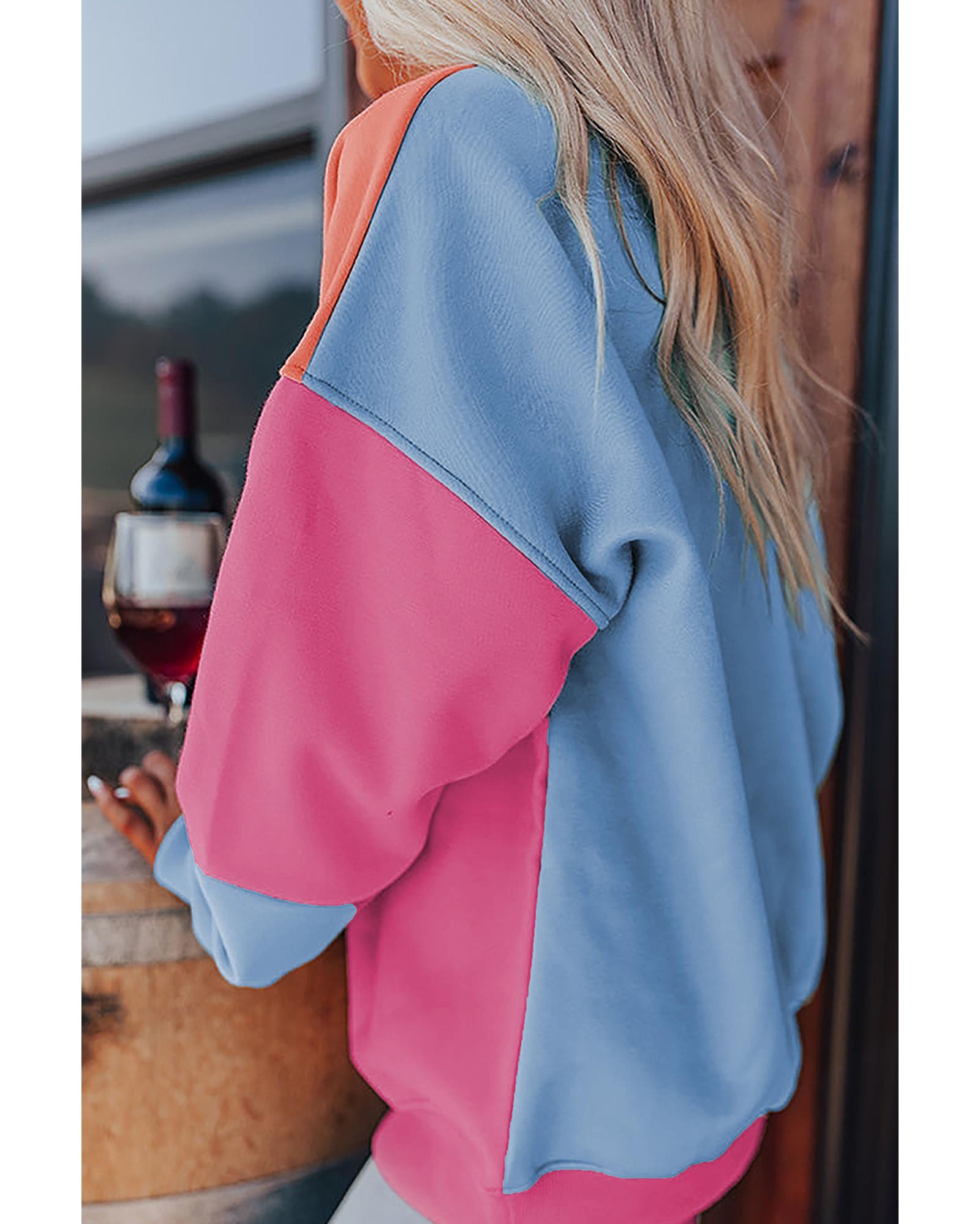 Bright Pink Colorblock Patchwork Drop Shoulder Sweatshirt – L