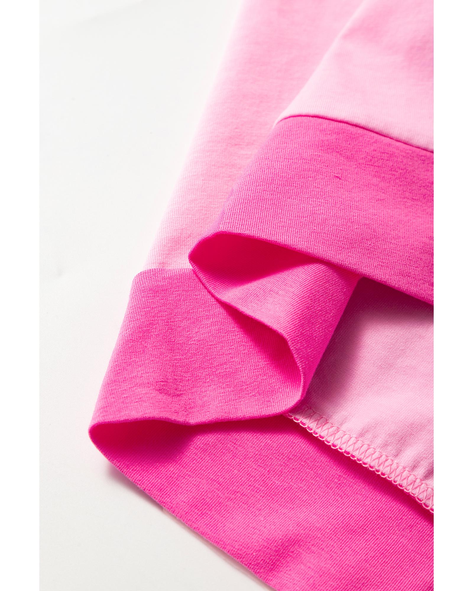 Bright Pink Colorblock Patchwork Short Sleeve Buttons Plus Size Henley Top – 4X