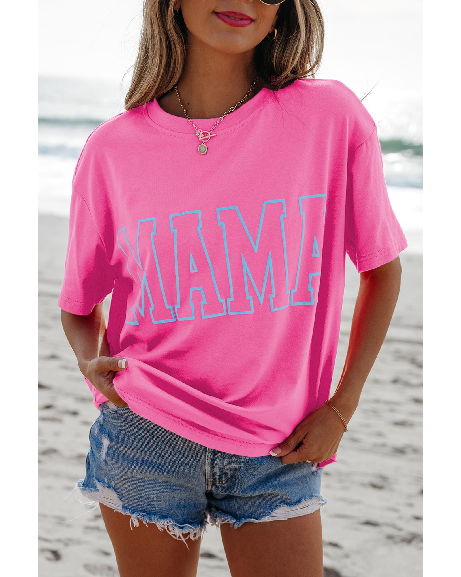 Bright Pink MAMA Letter Graphic Neon T Shirt – M