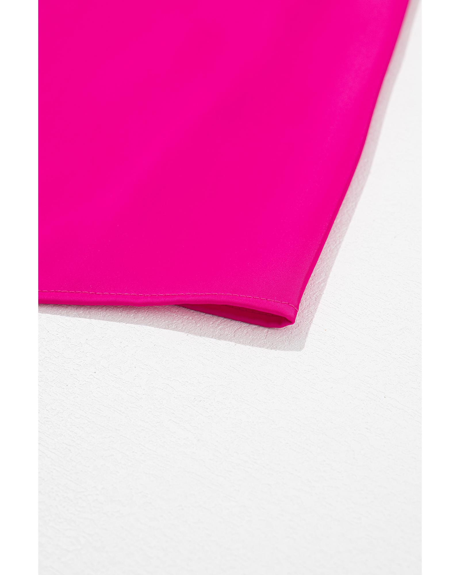 Bright Pink Pleated Mock Neck Frilled Trim Sleeveless Top – L
