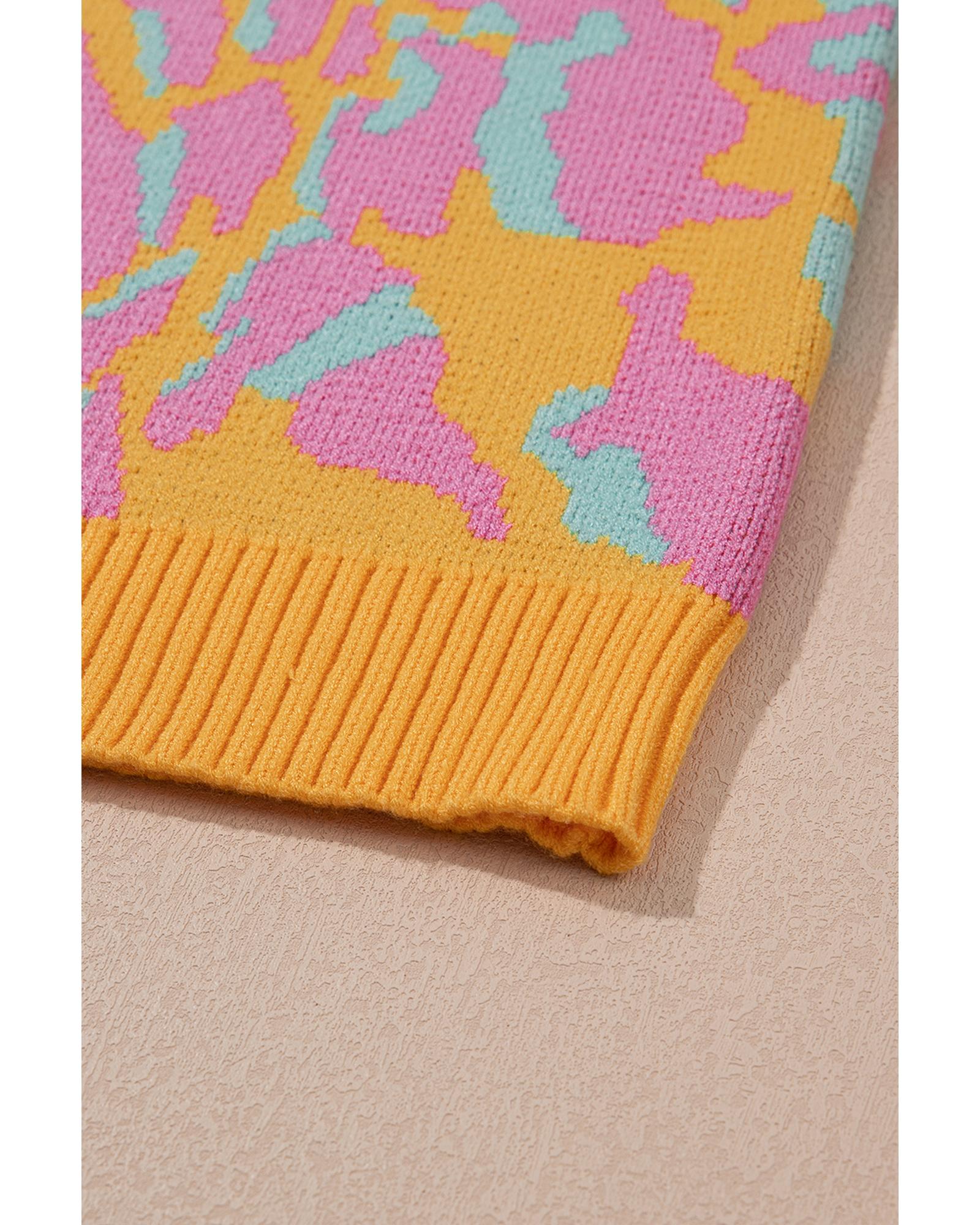 Bright Pink Plus Size Leopard Ribbed Trim Sweater – 1X