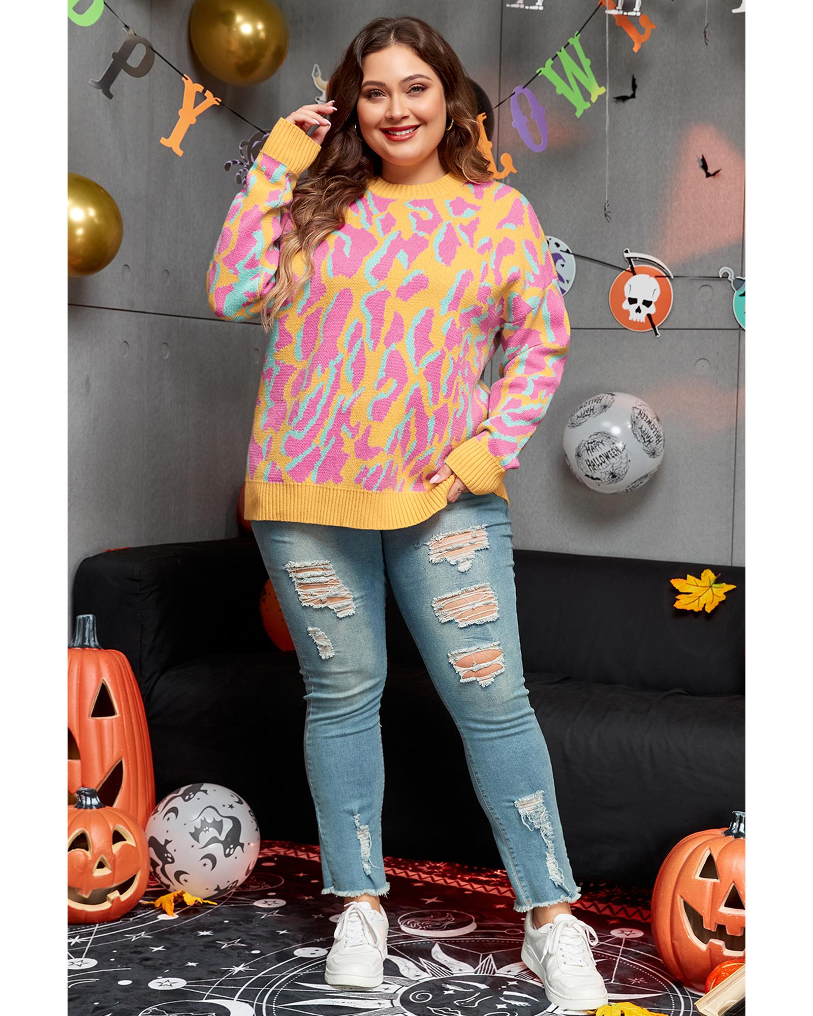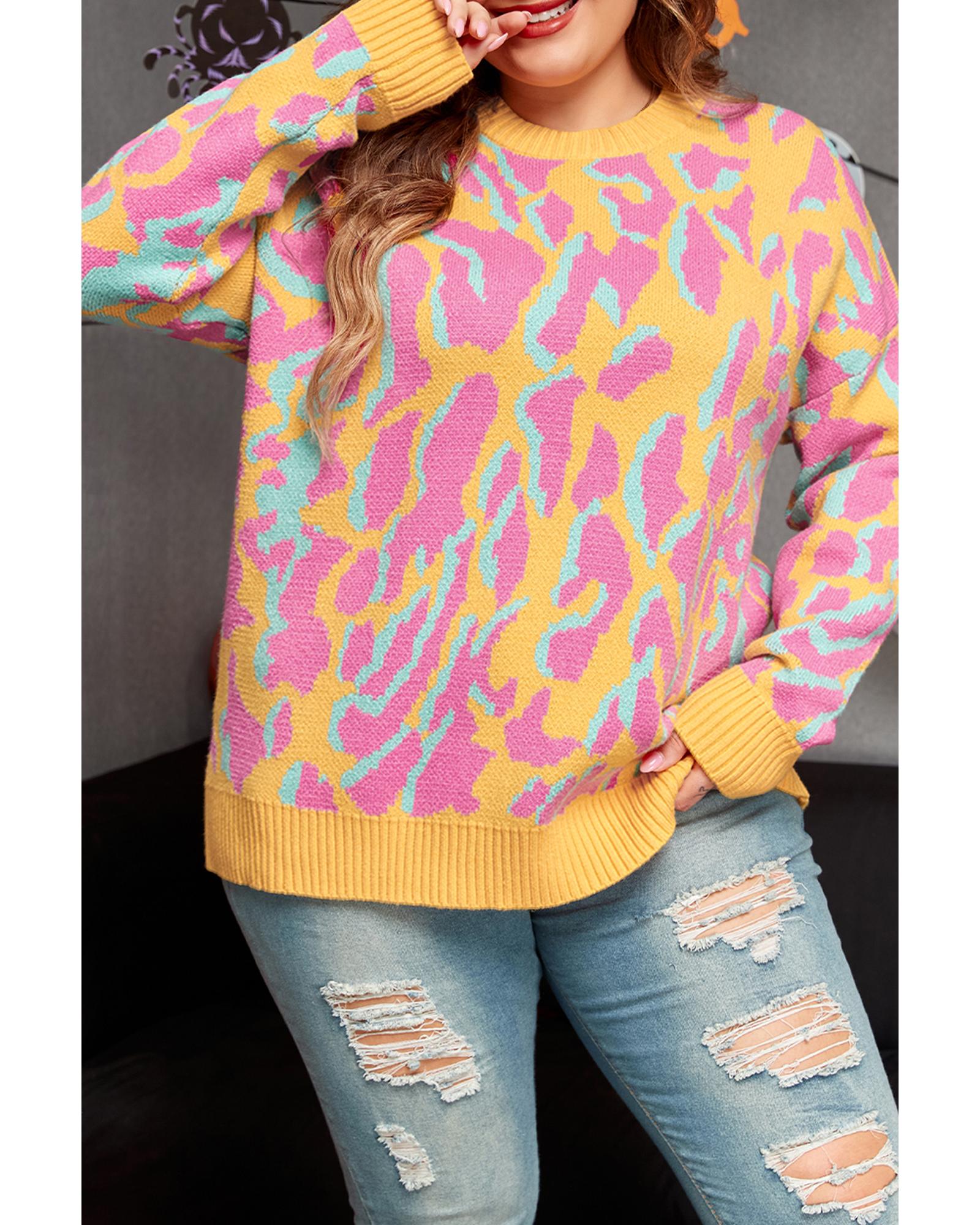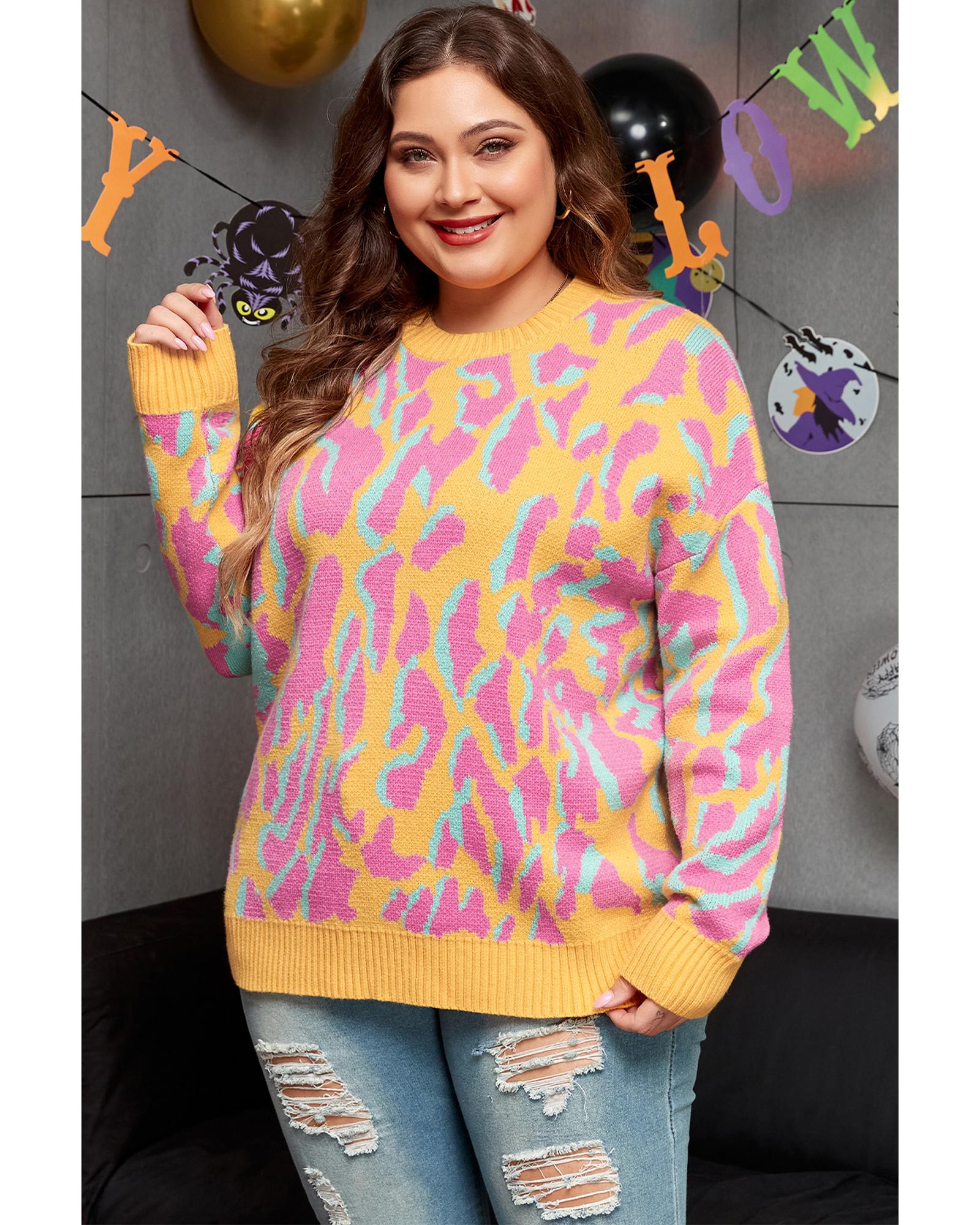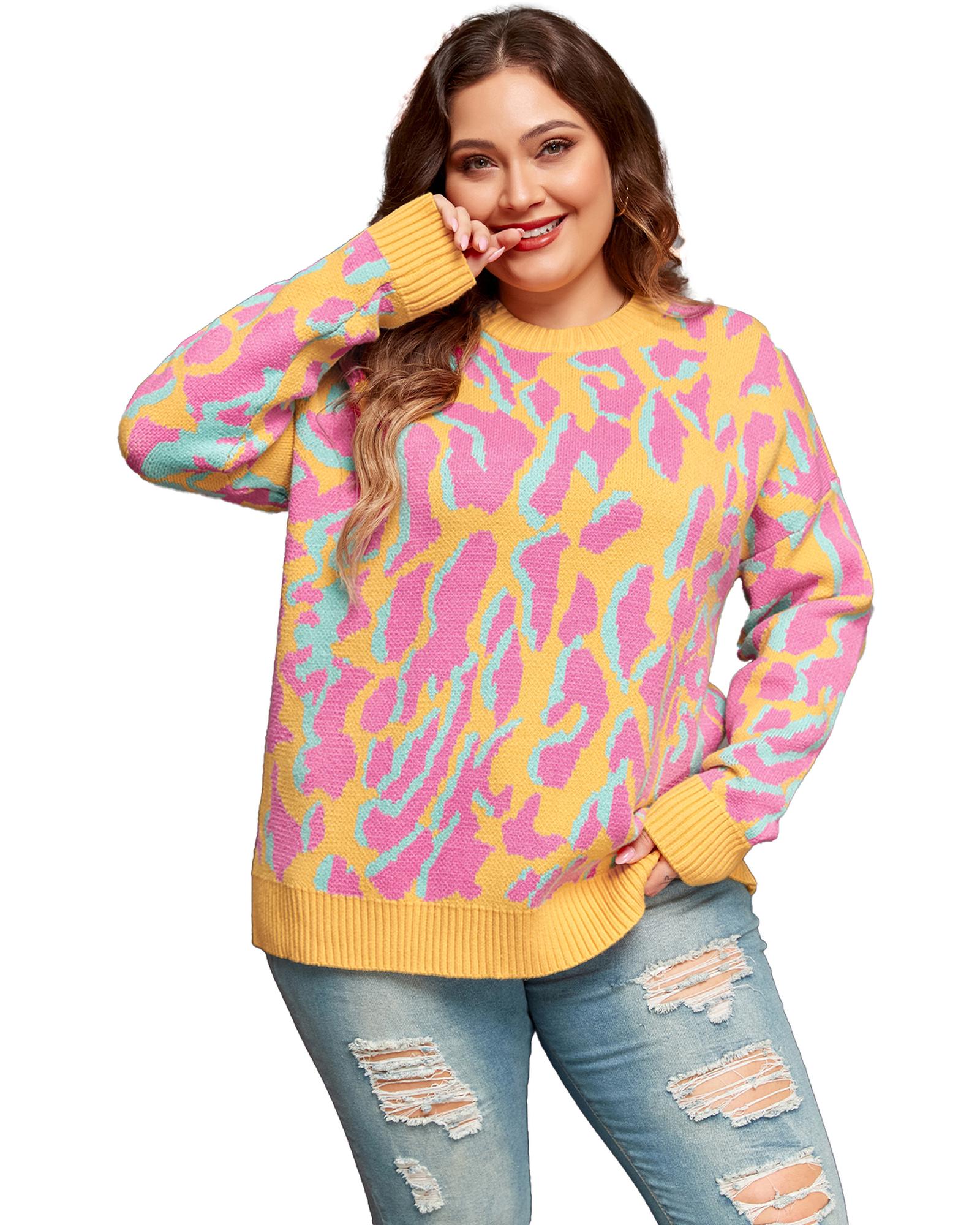 • Bright pink plus size sweater with leopard print design