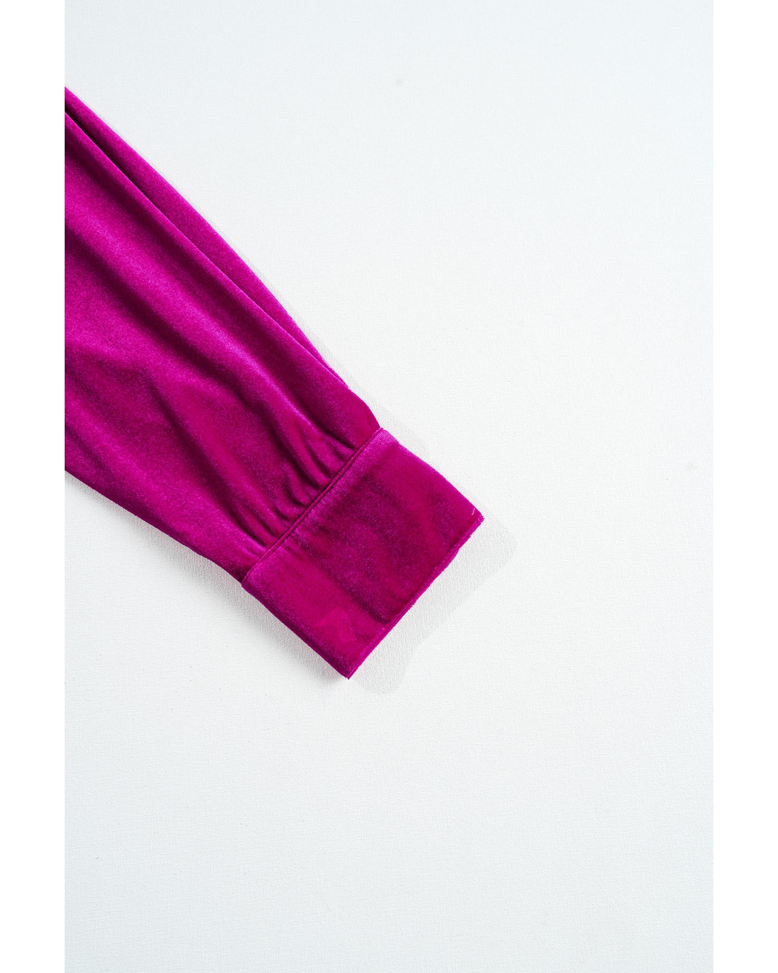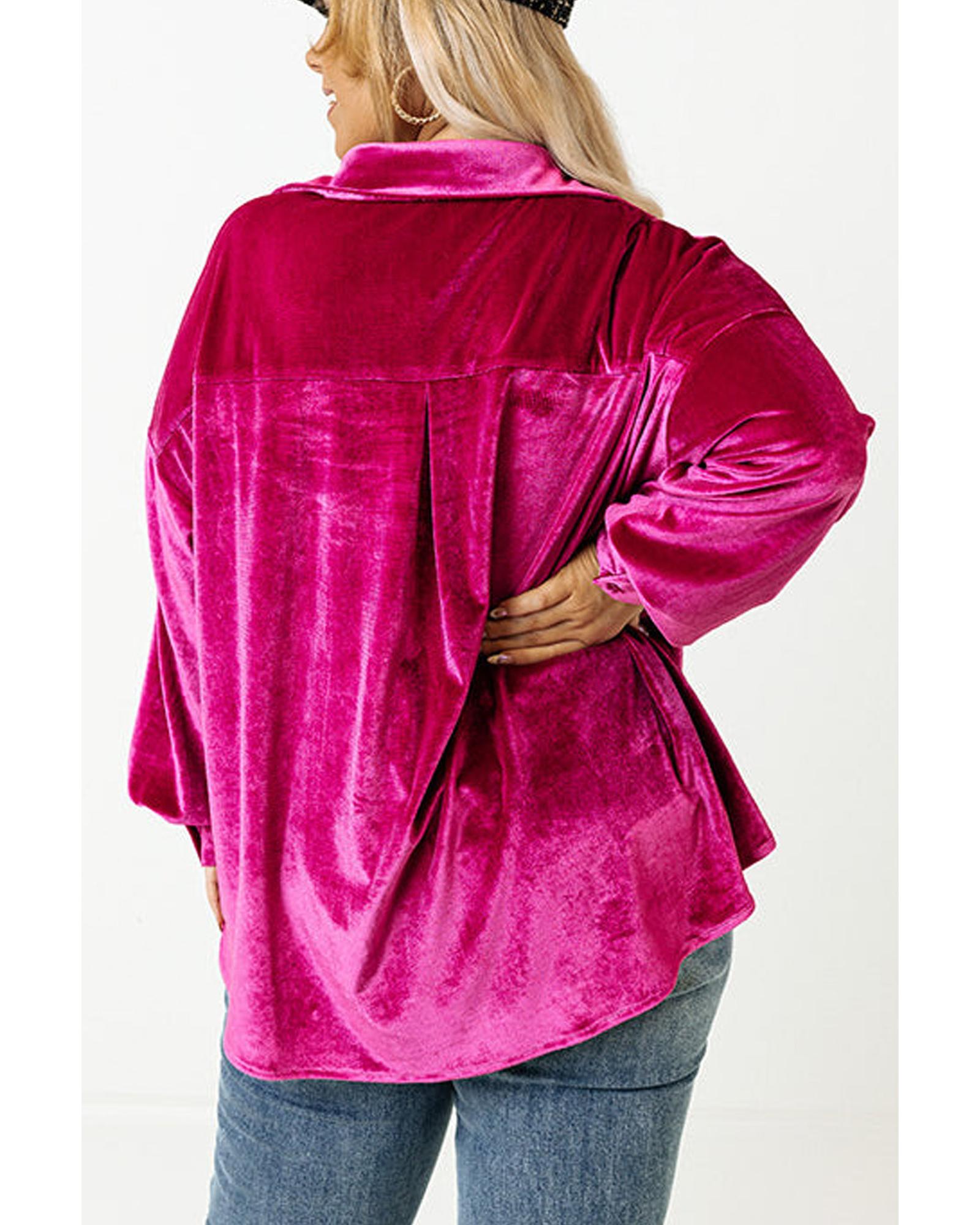 Bright Pink Plus Size Velvet Chest Pocket Drop Shoulder Shirt – 1X