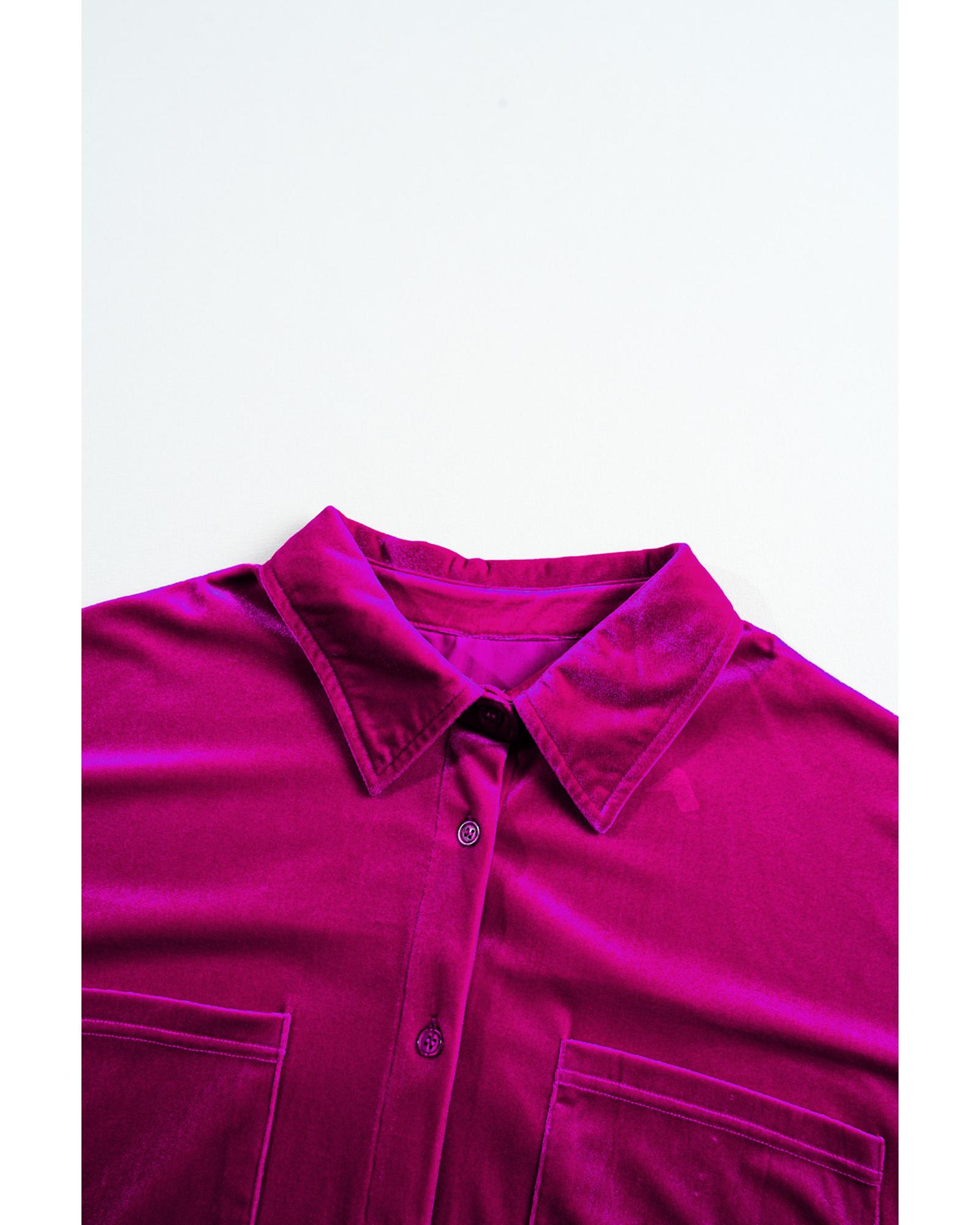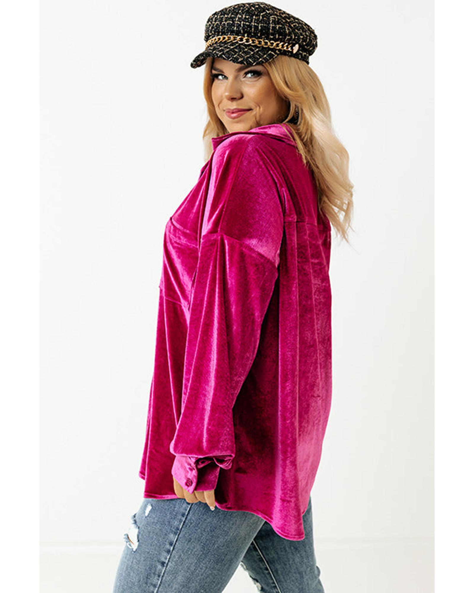 Bright Pink Plus Size Velvet Chest Pocket Drop Shoulder Shirt – 3X