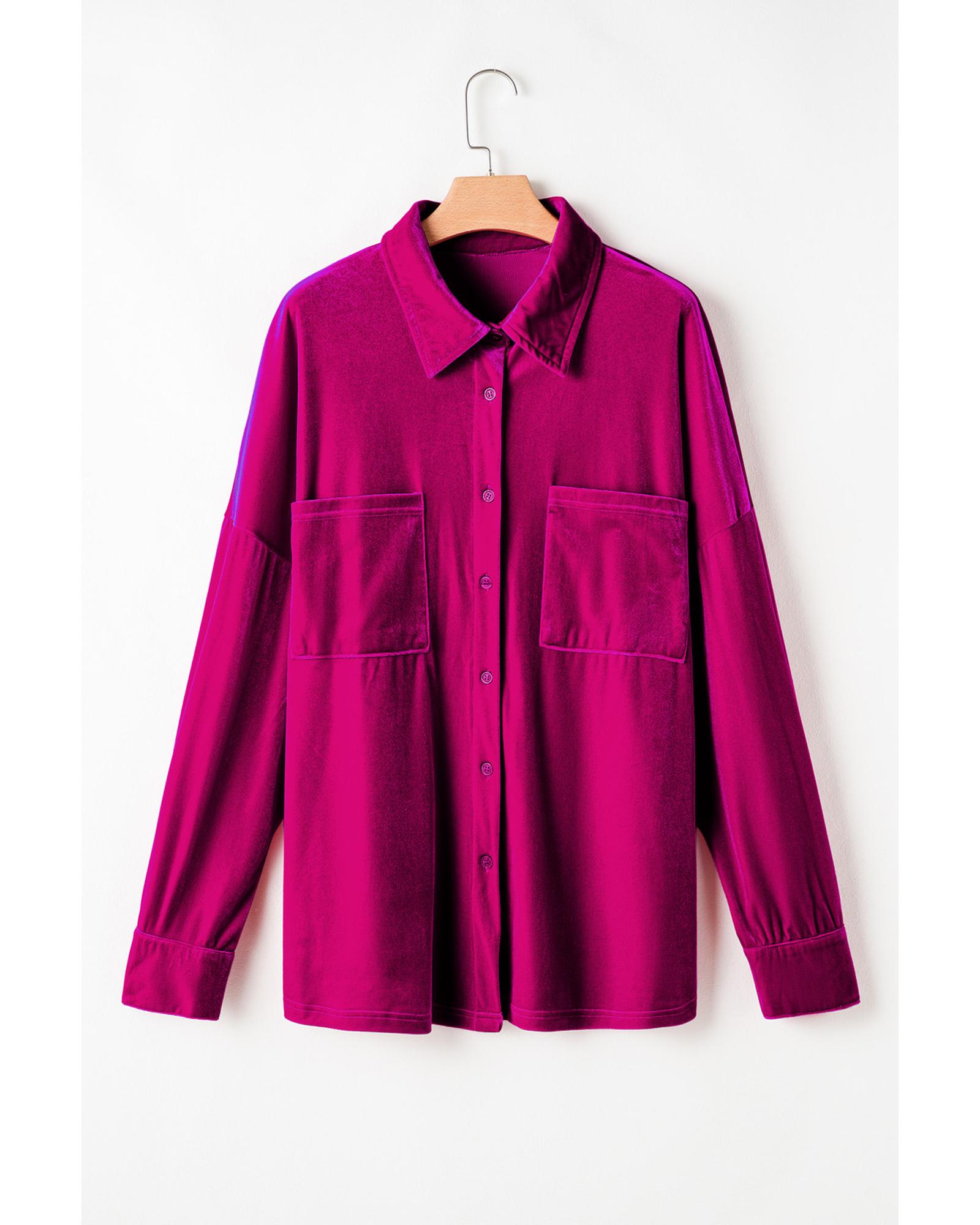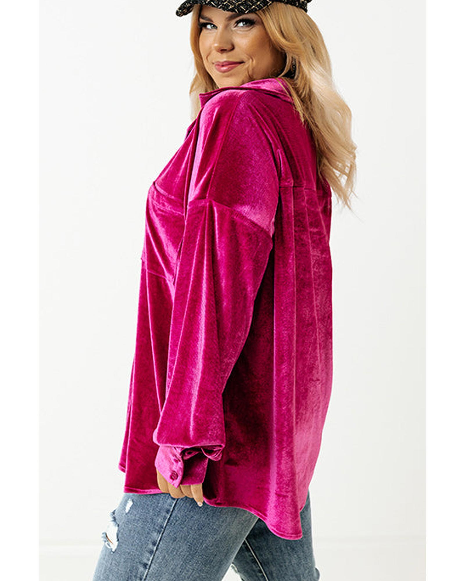 Bright Pink Plus Size Velvet Chest Pocket Drop Shoulder Shirt – 4X
