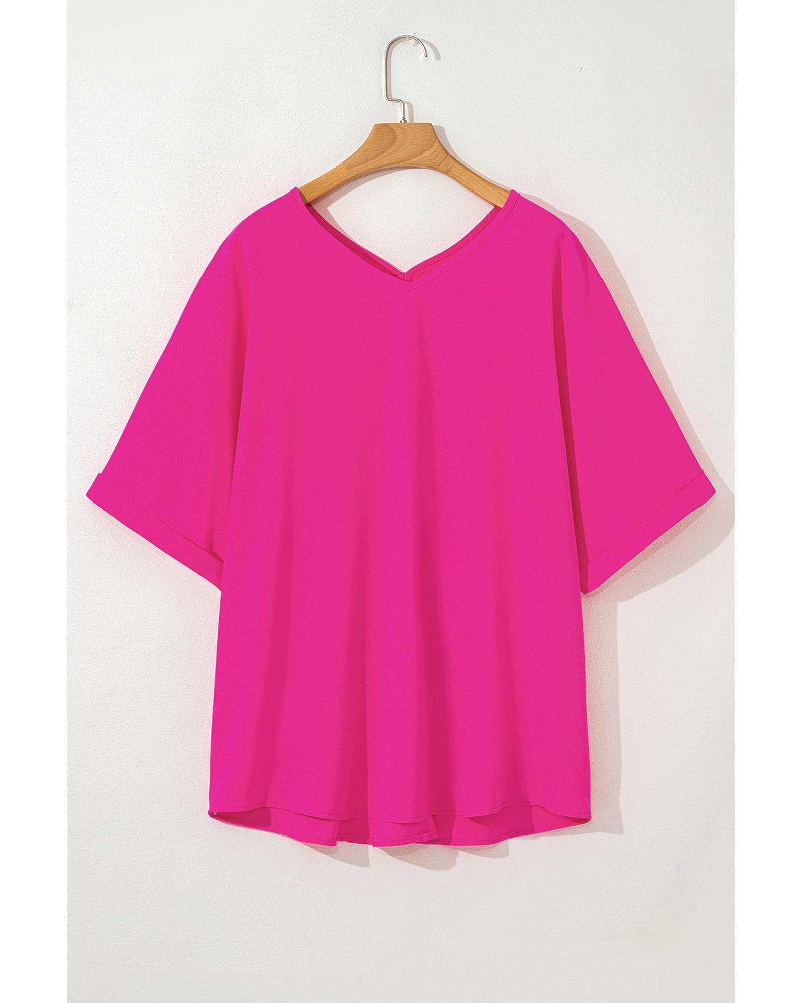 Bright Pink Seamed Back High Low Hem V Neck Cuffed Sleeve Plus Size Tee – 3X
