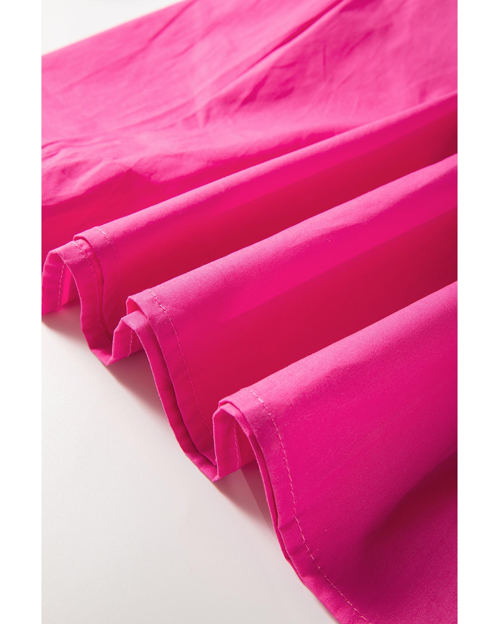 Bright Pink Solid Color Puff Sleeve Tie Front High Waist Mini Dress – L