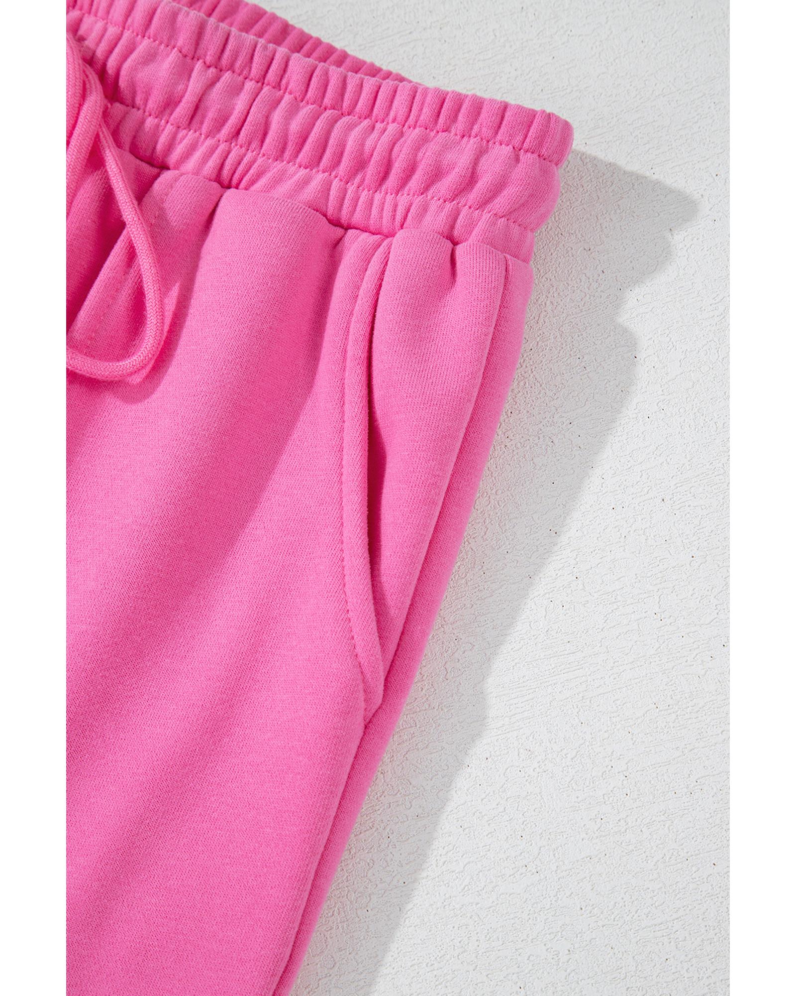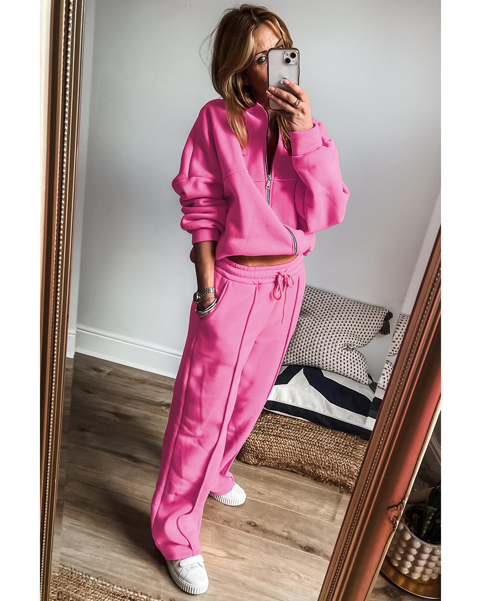 - Bright pink solid seamed zipper jacket and drawstring waist pants set