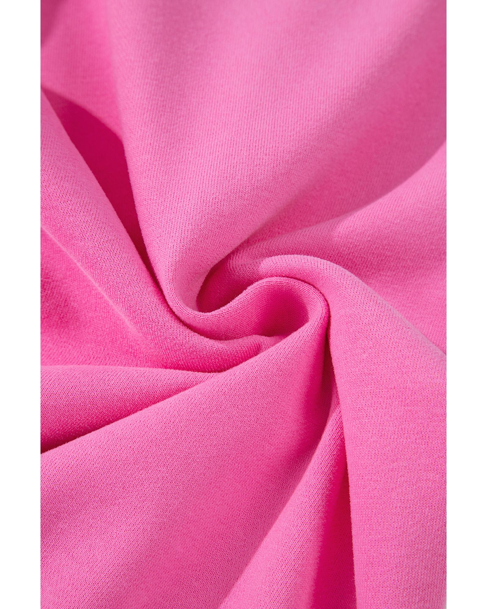 Bright Pink Solid Seamed Zipper Jacket and Drawstring Waist Pants Set – 2XL