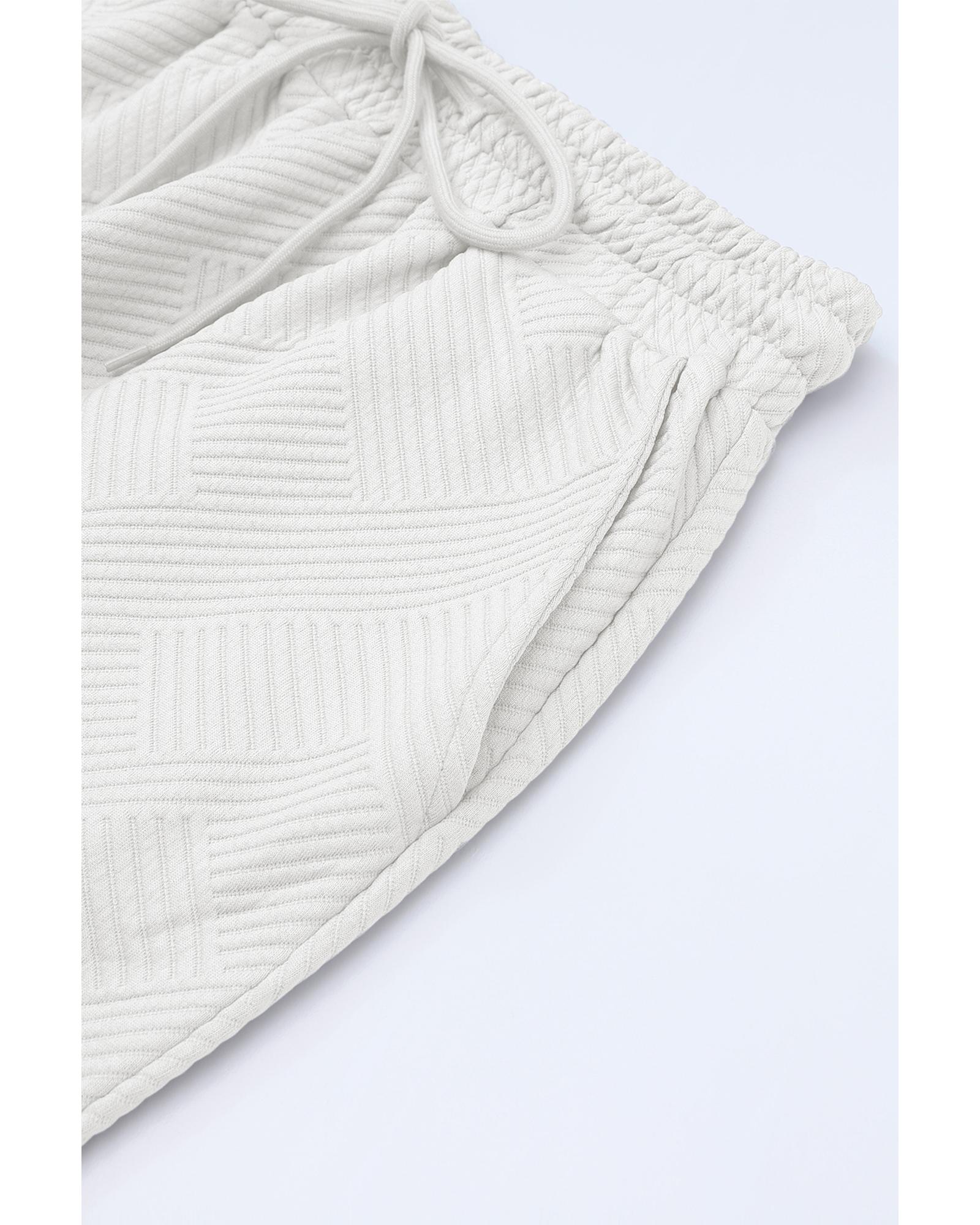 Bright White Textured Loose Fit T Shirt and Drawstring Pants Set – S