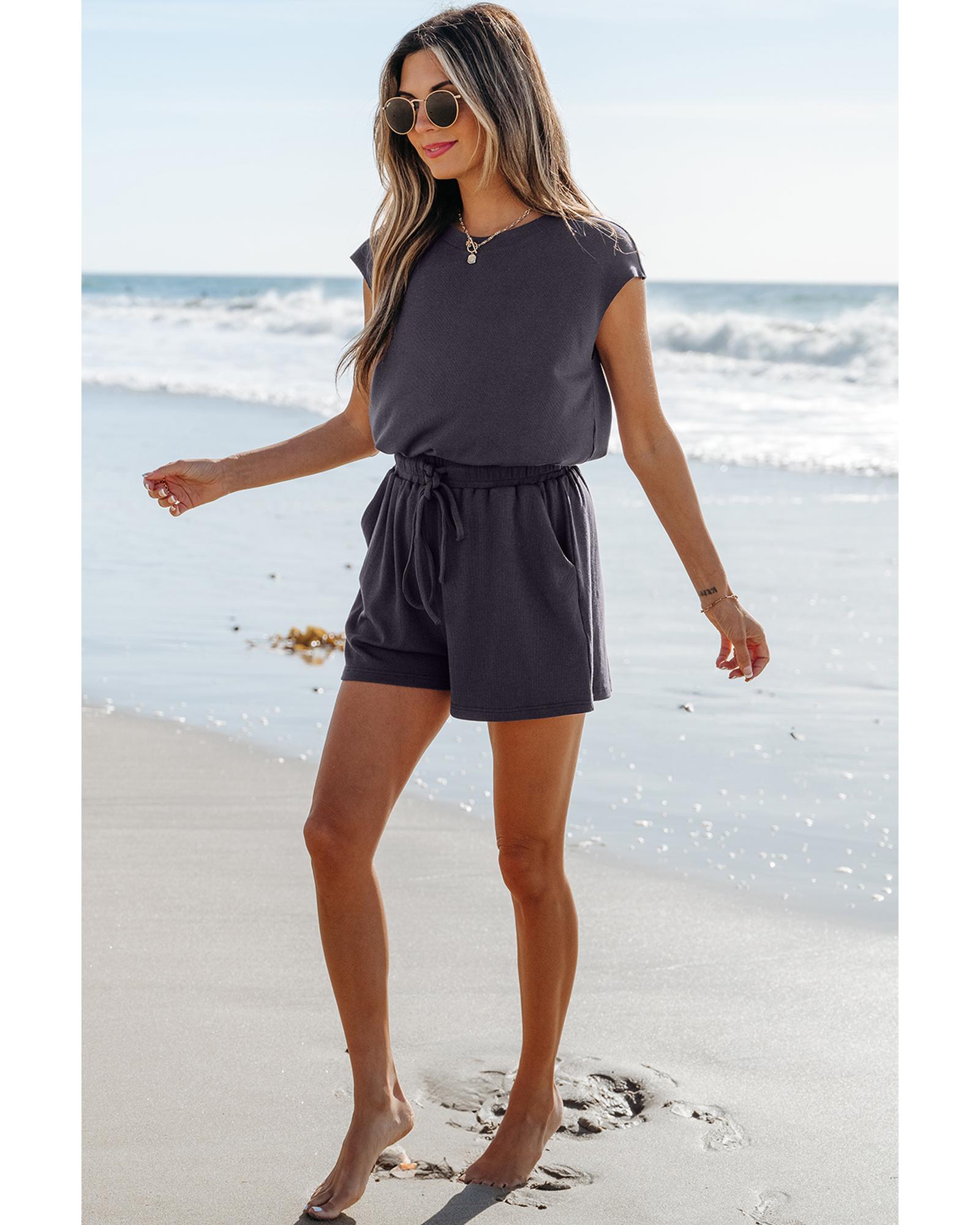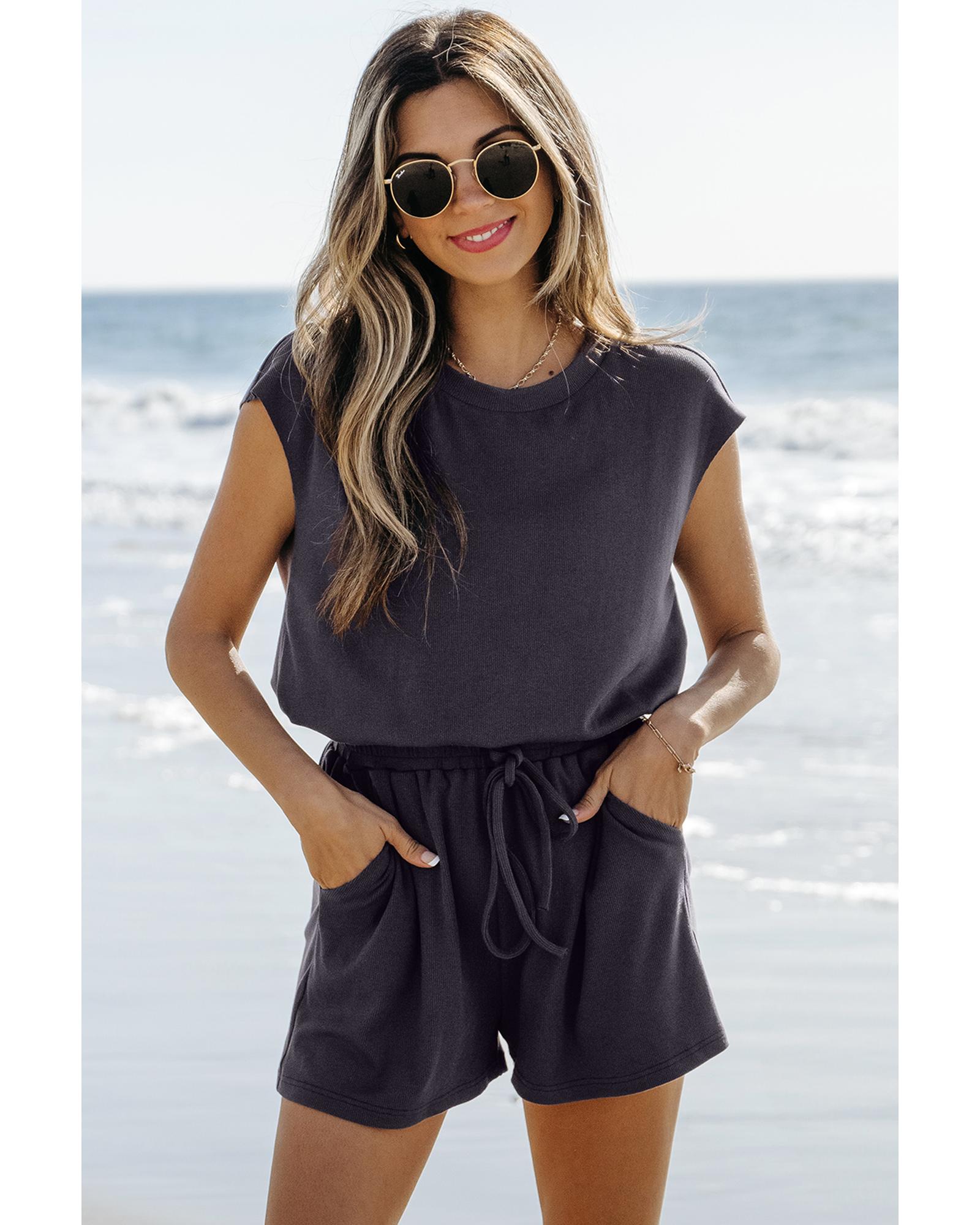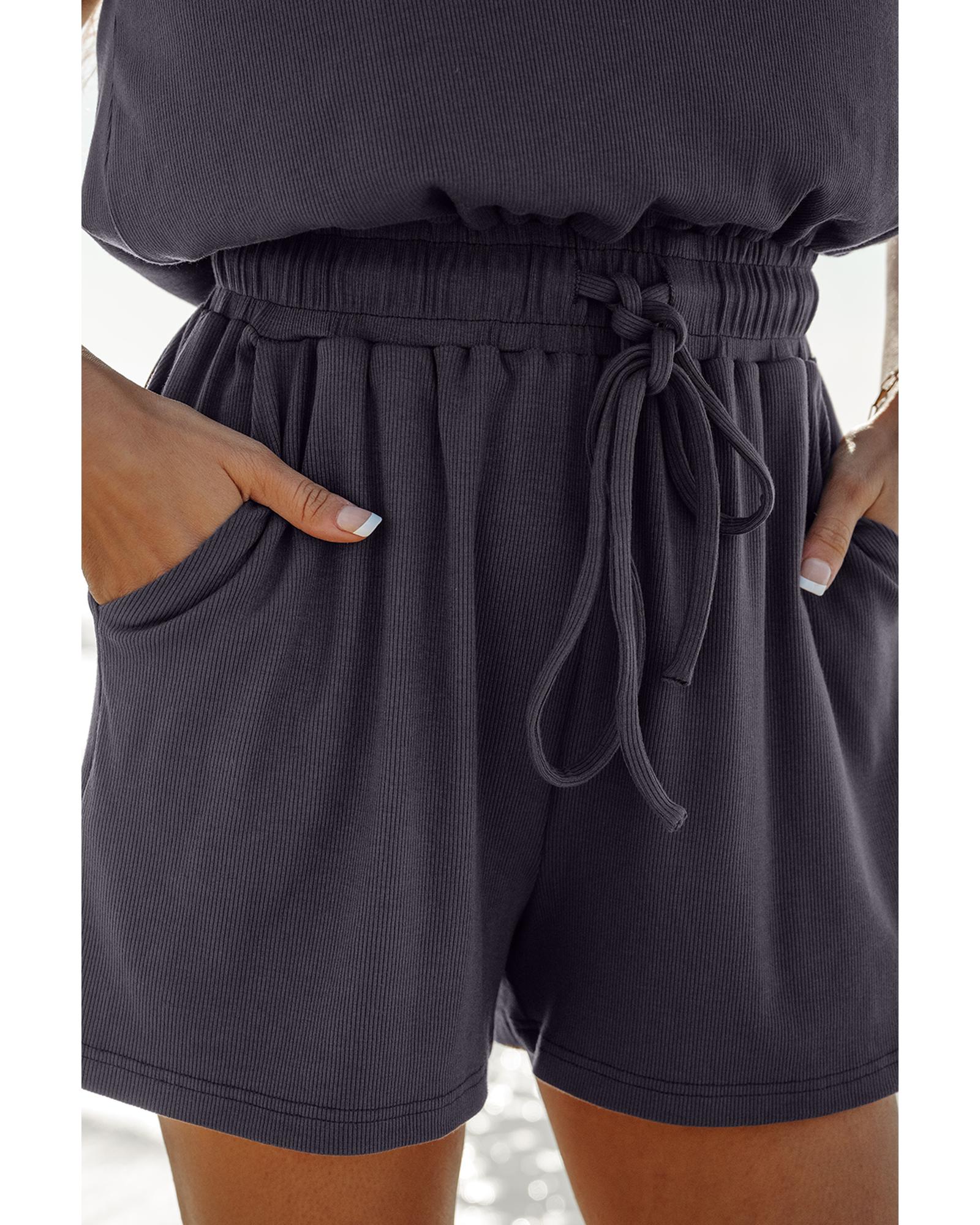 Bristol Black Knit Open Back Cap Sleeve Drawstring Romper – L