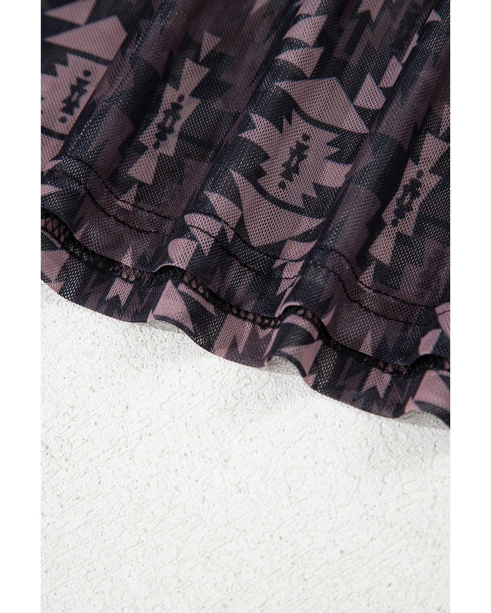 Brown Aztec Print Mock Neck Short Sleeve Mesh T Shirt – M