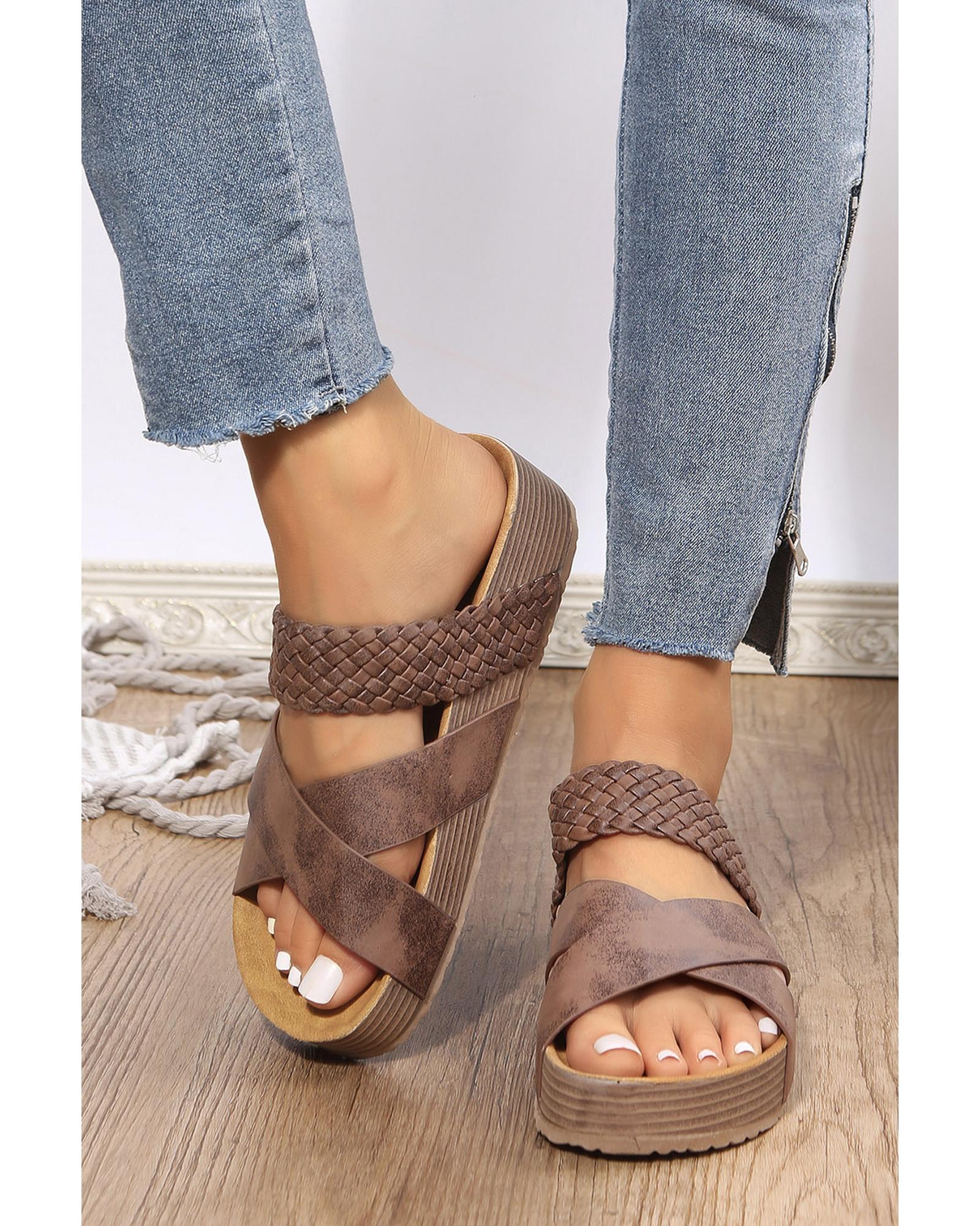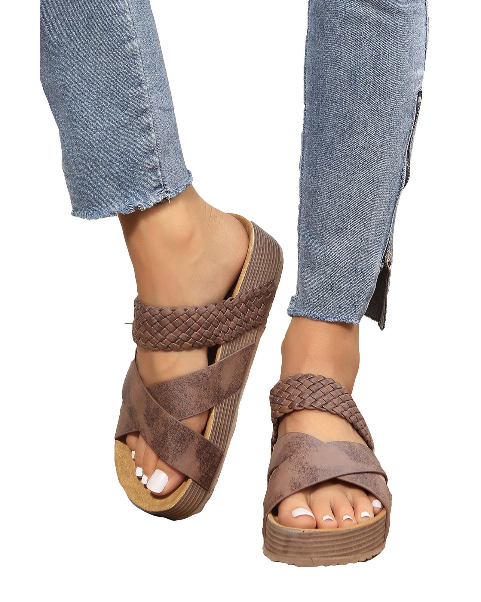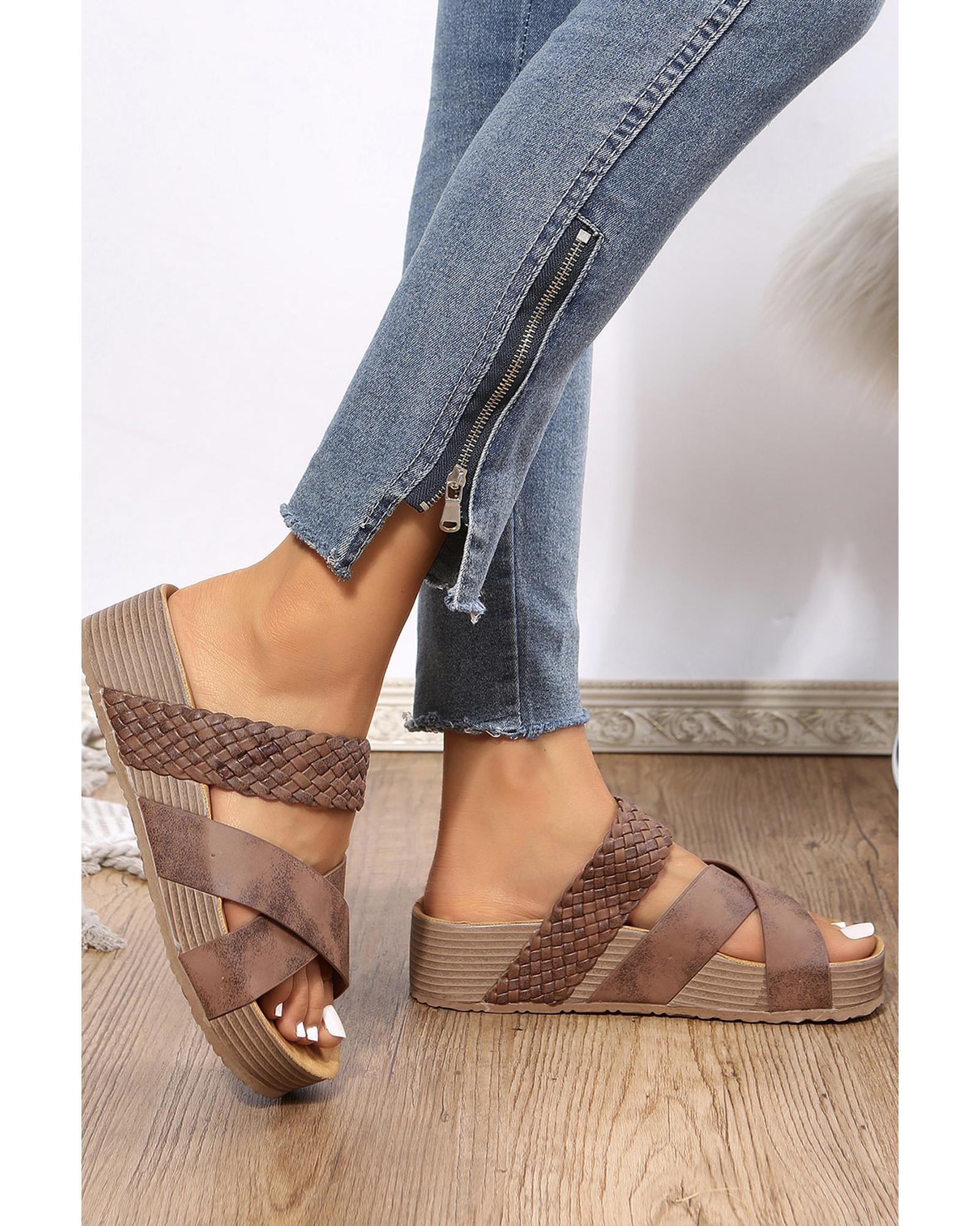 Brown Braided Detail Criss Cross Platform Slippers – 37 EU