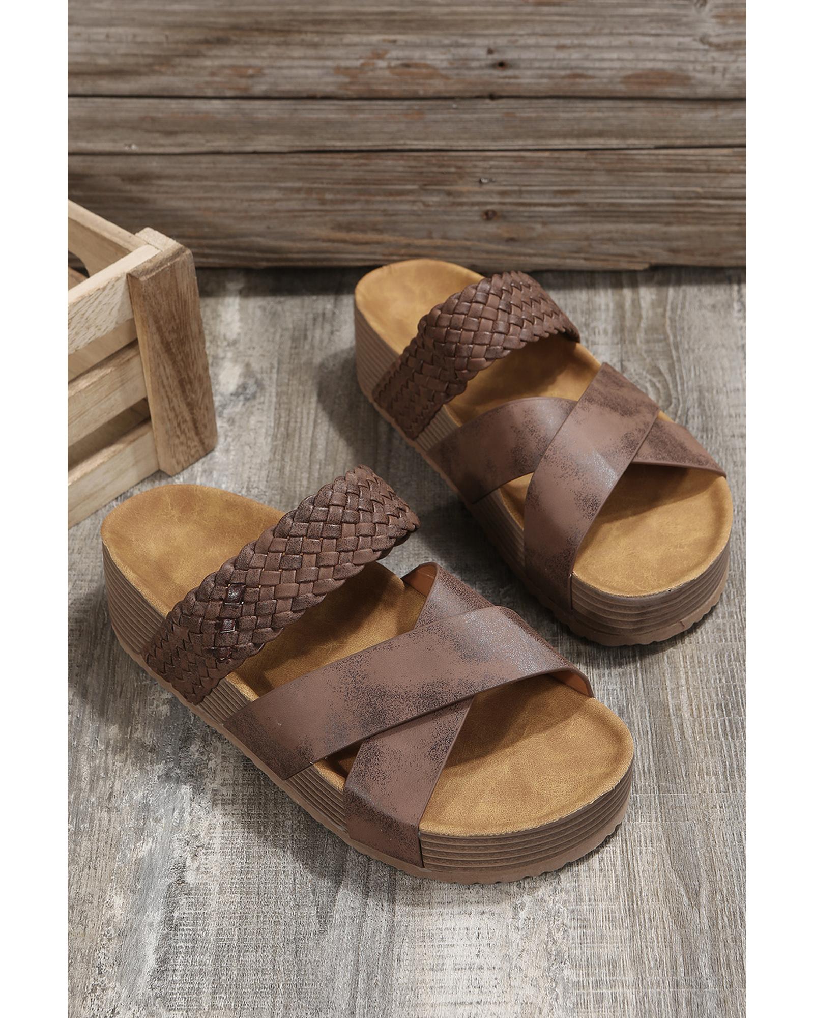 Brown Braided Detail Criss Cross Platform Slippers - 41 EU