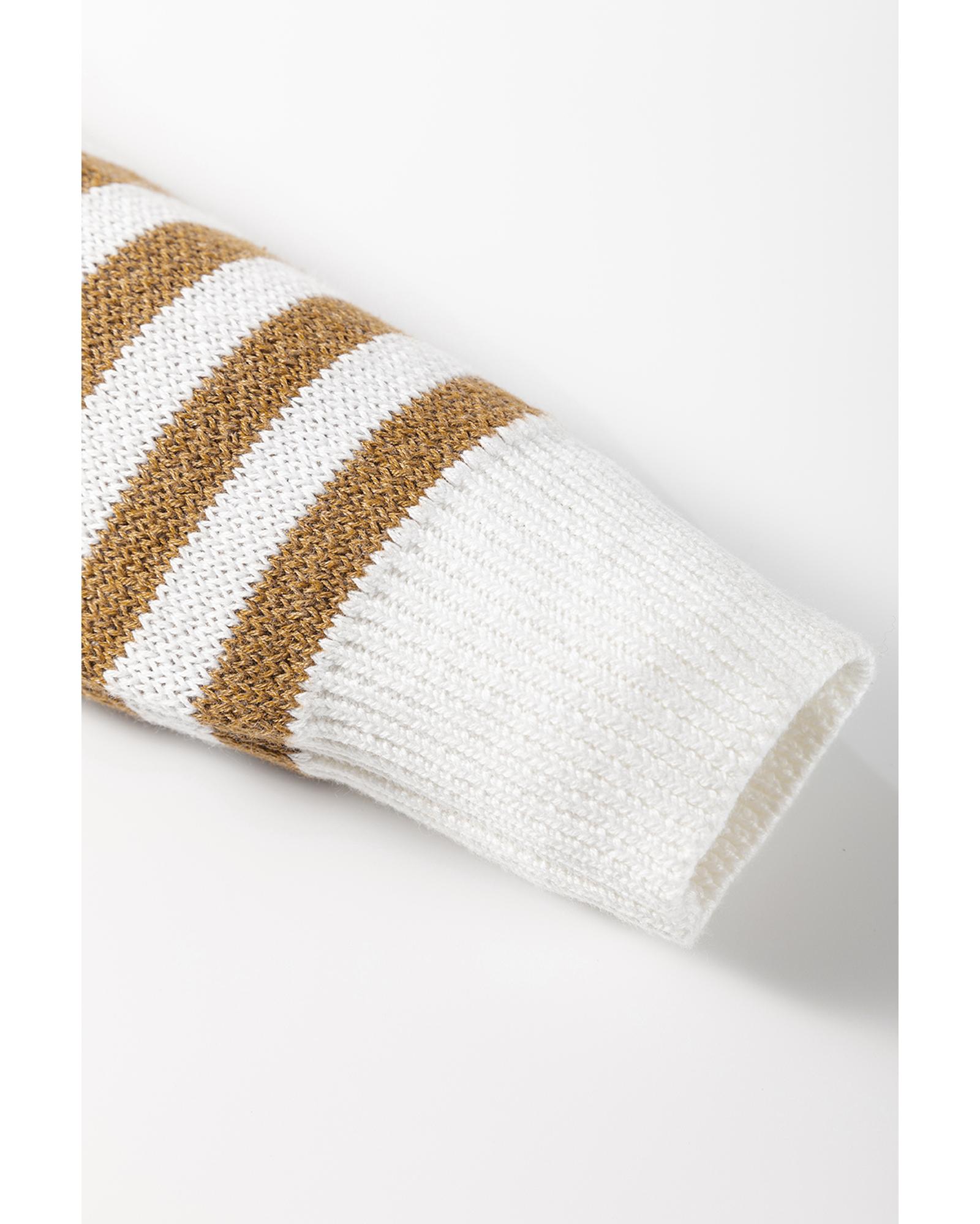Contrast Trimmed Striped Drop Shoulder Sweater - XL