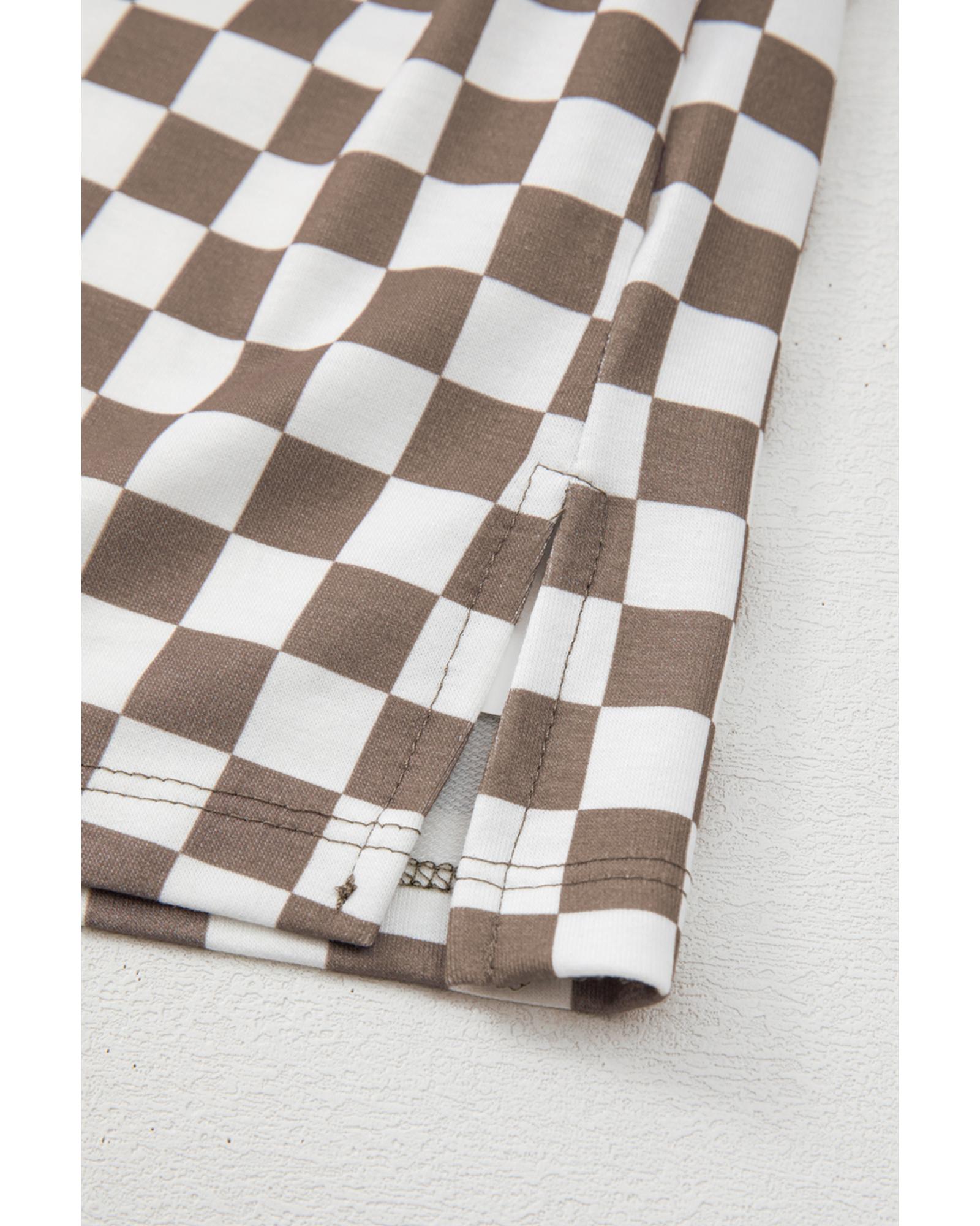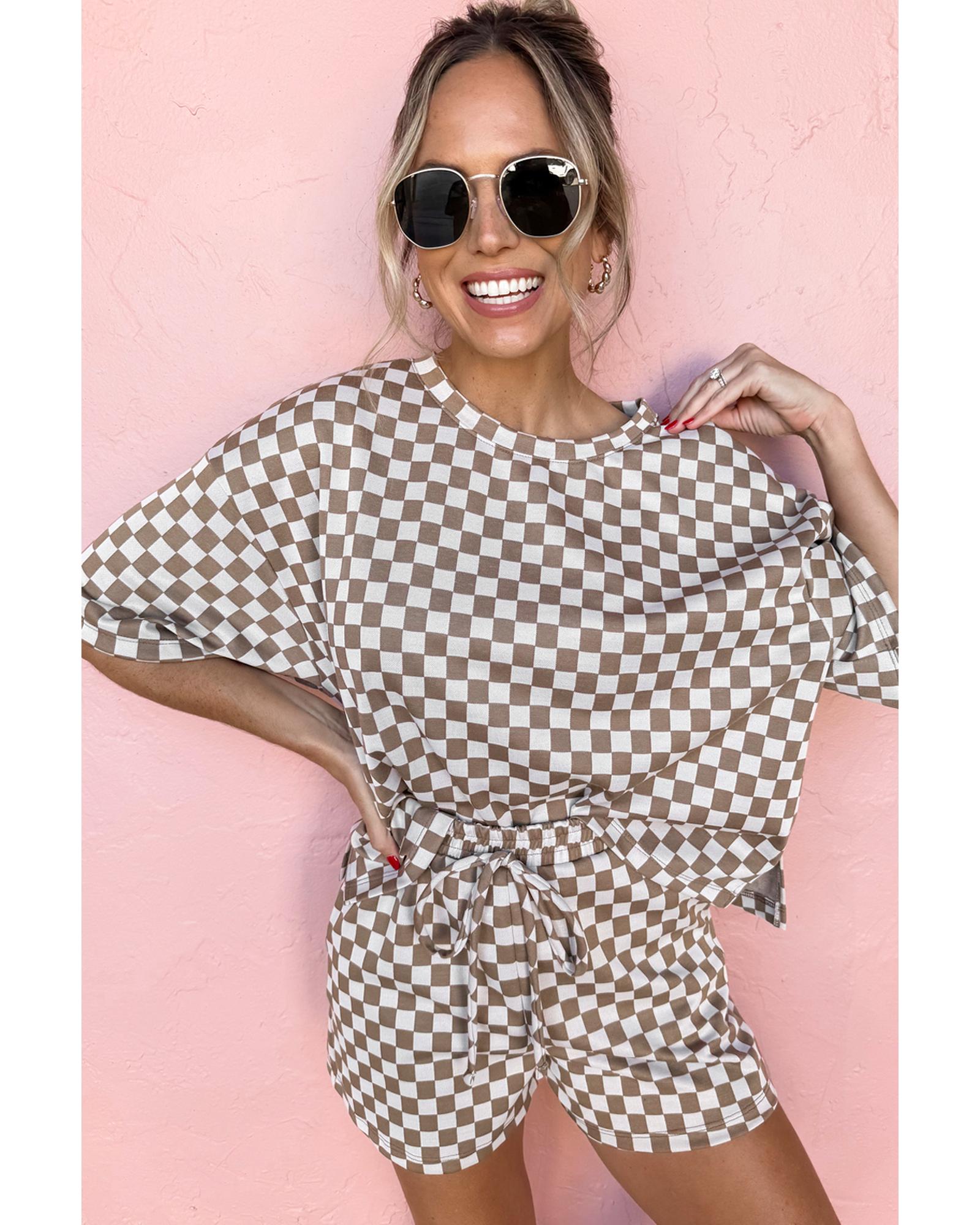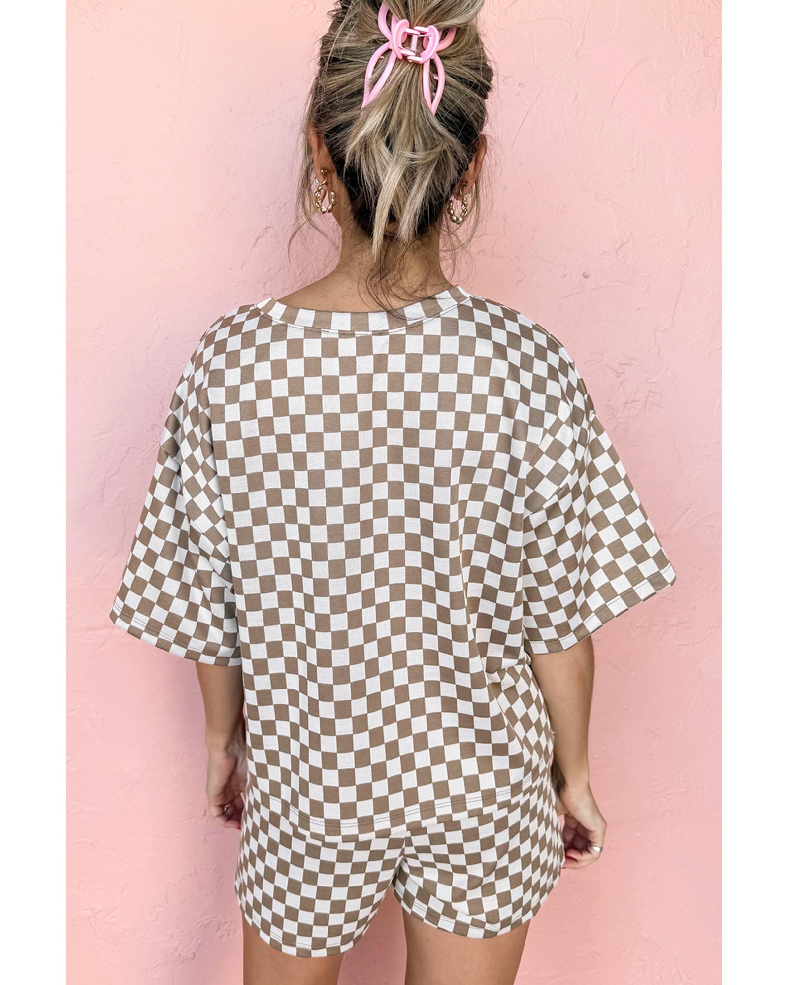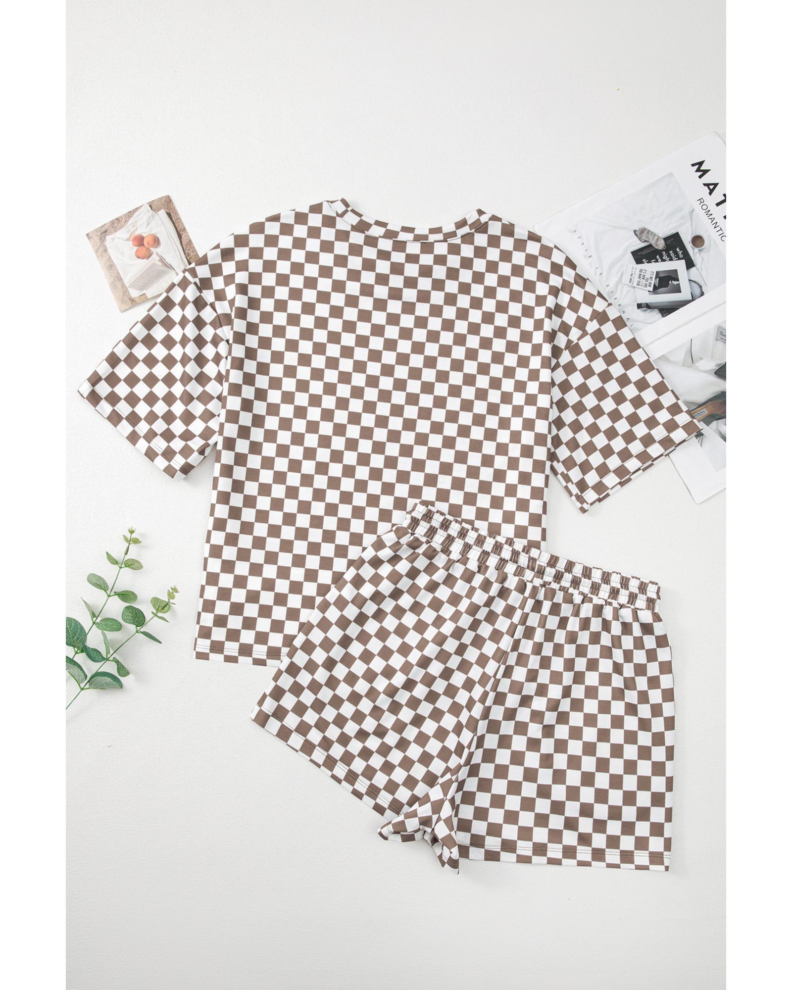 Brown Checkered Top and Short Casual 2pcs Set – M