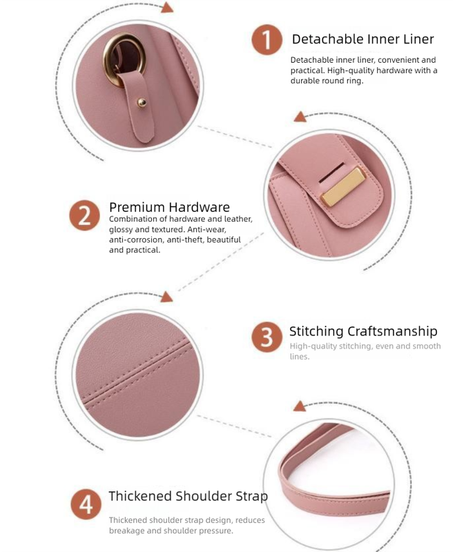 - Versatile Carrying Options: The main tote can be carried by its elegant top handles or worn as a shoulder bag with the detachable long strap. The medium bag is perfect for crossbody wear, keeping your hands free.