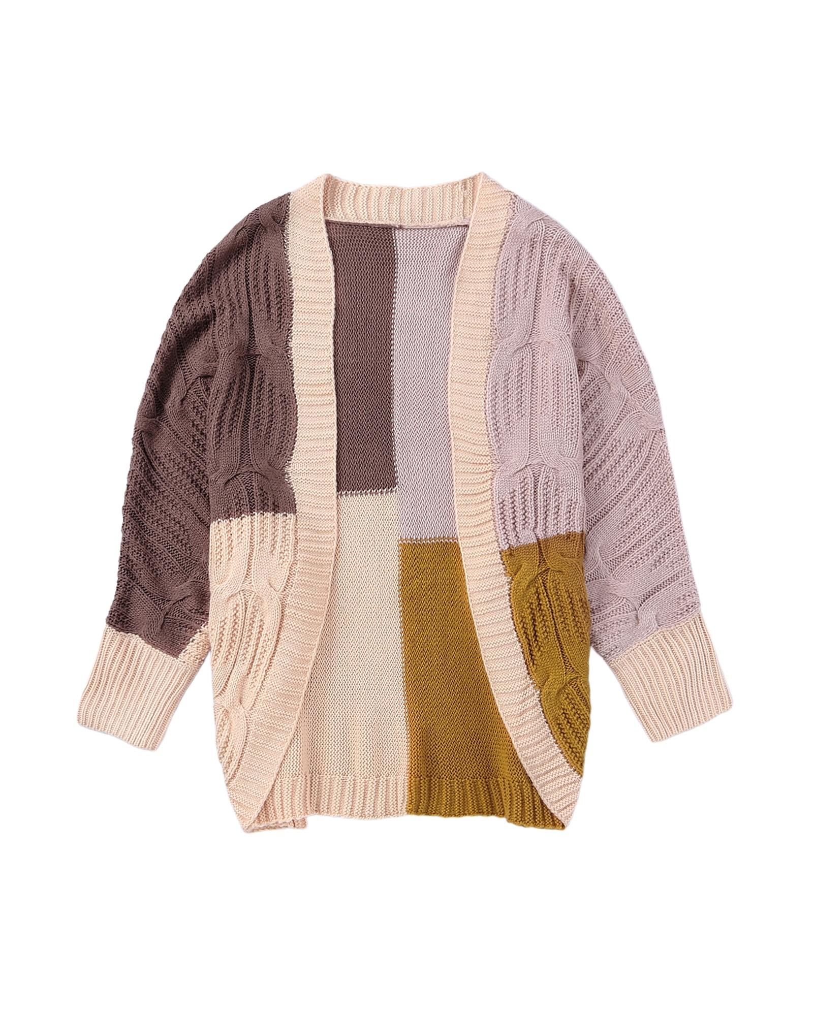Brown Color Block Loose Open Front Knitted Cardigan – S