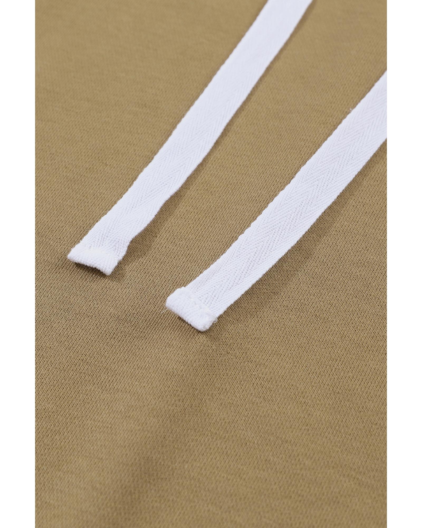 Brown Colorblock Patchwork Pullover Hoodie – M