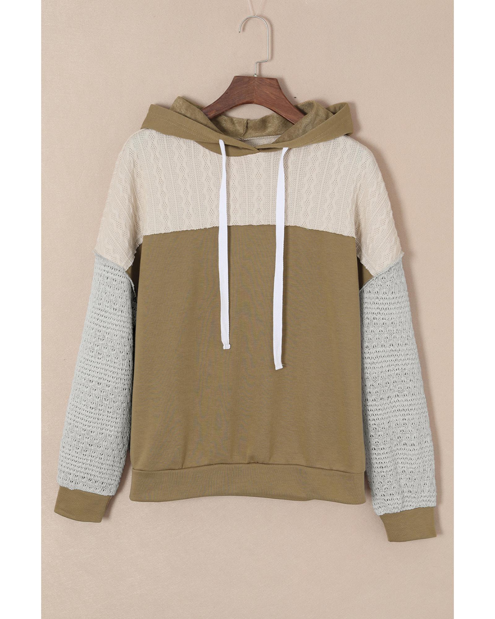 Brown Colorblock Patchwork Pullover Hoodie – S
