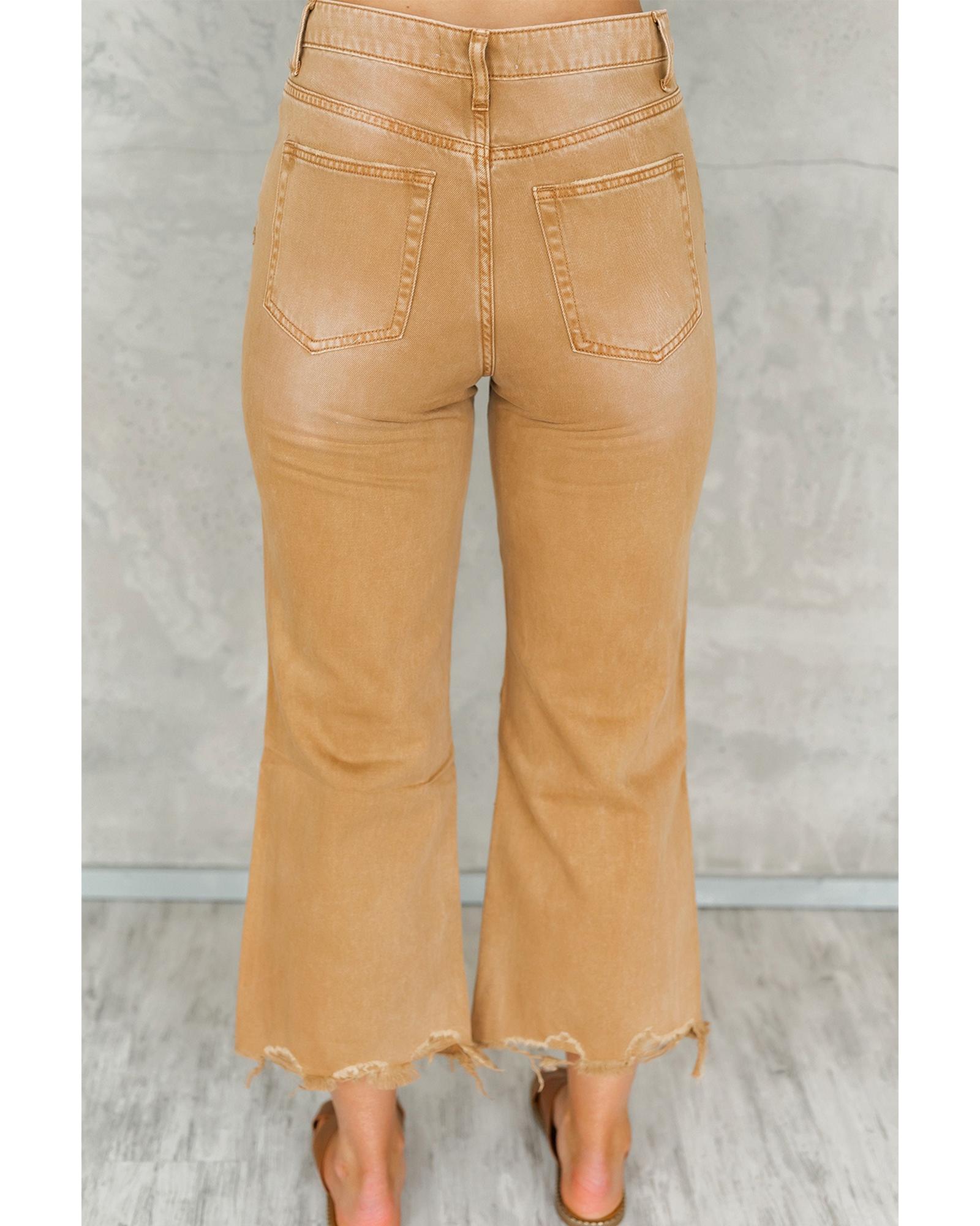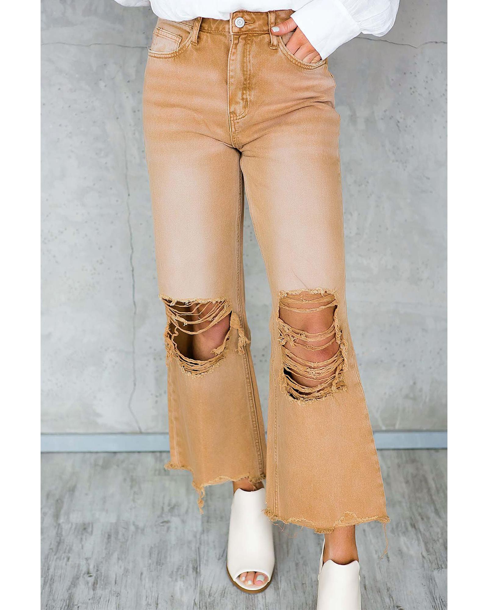 Brown Distressed Hollow-out High Waist Cropped Flare Jeans – 10 US