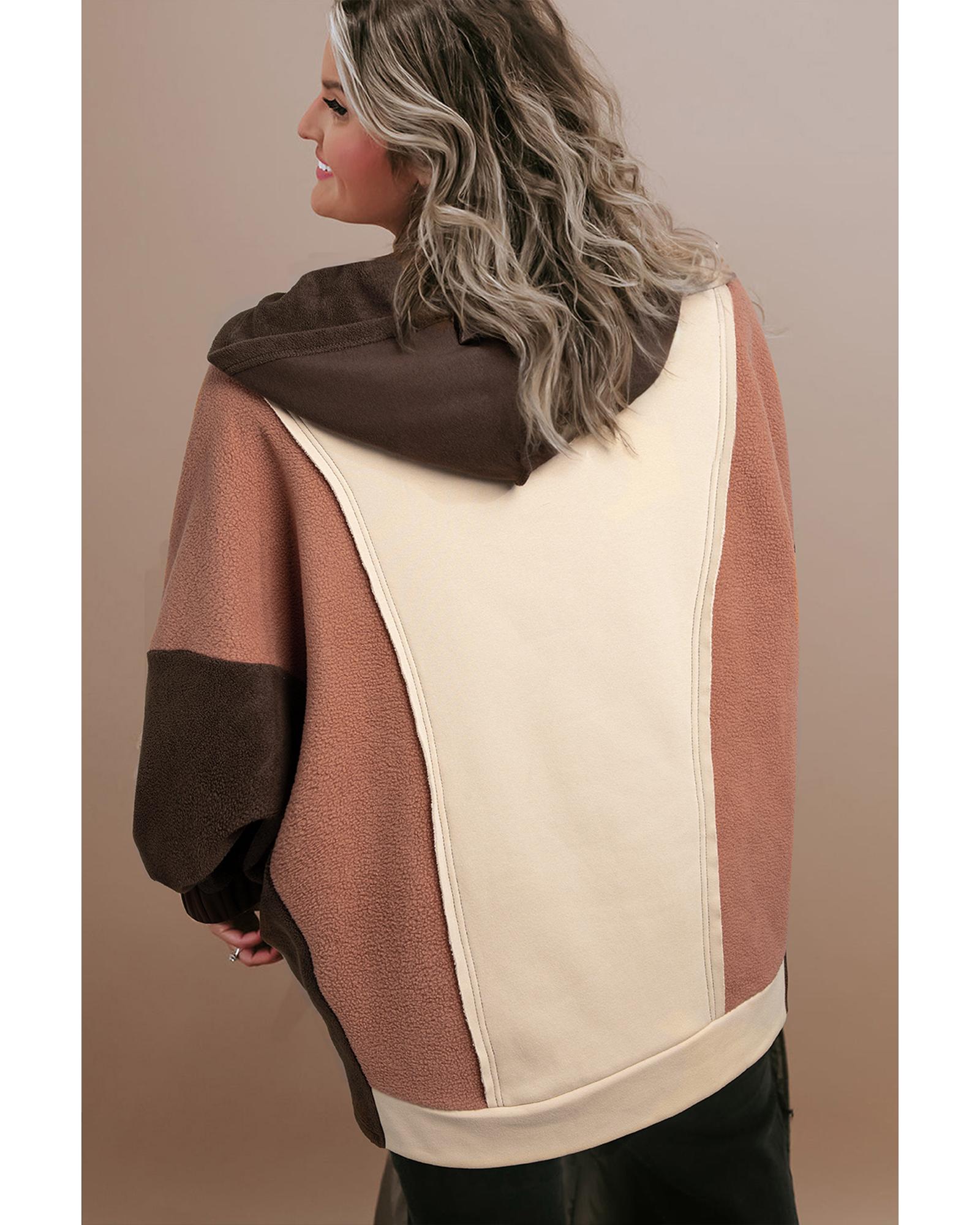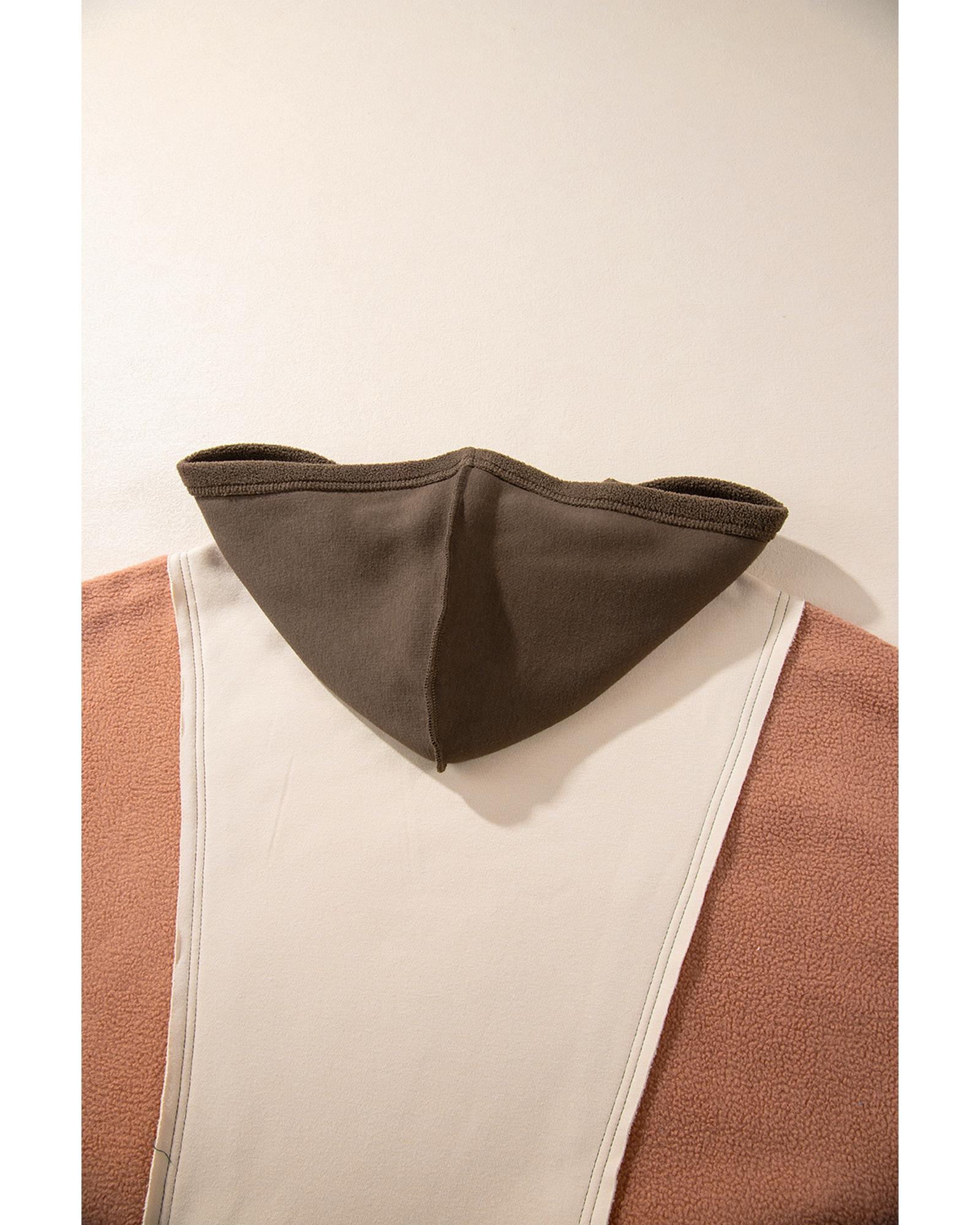 Brown Exposed Seam Colorblock Plus Size Hoodie – 3X