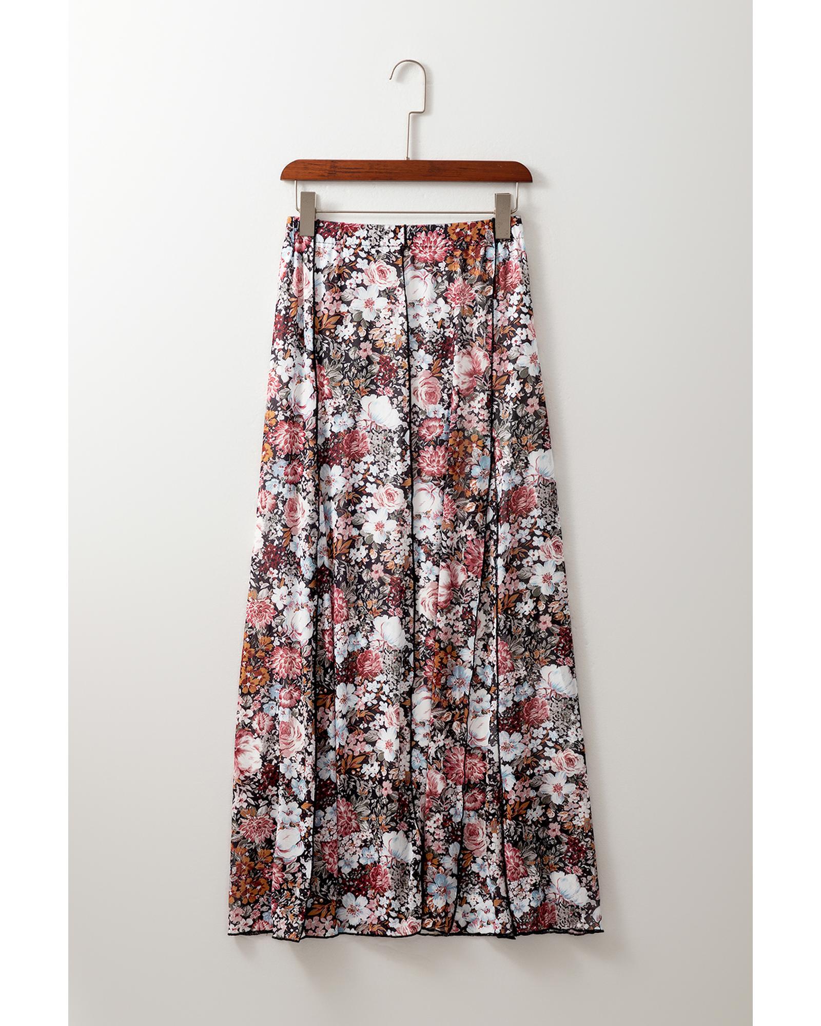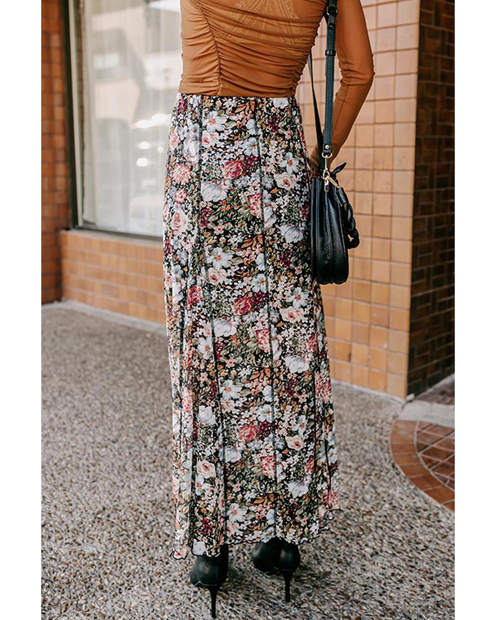 - Brown Floral Print High Waist Maxi Skirt