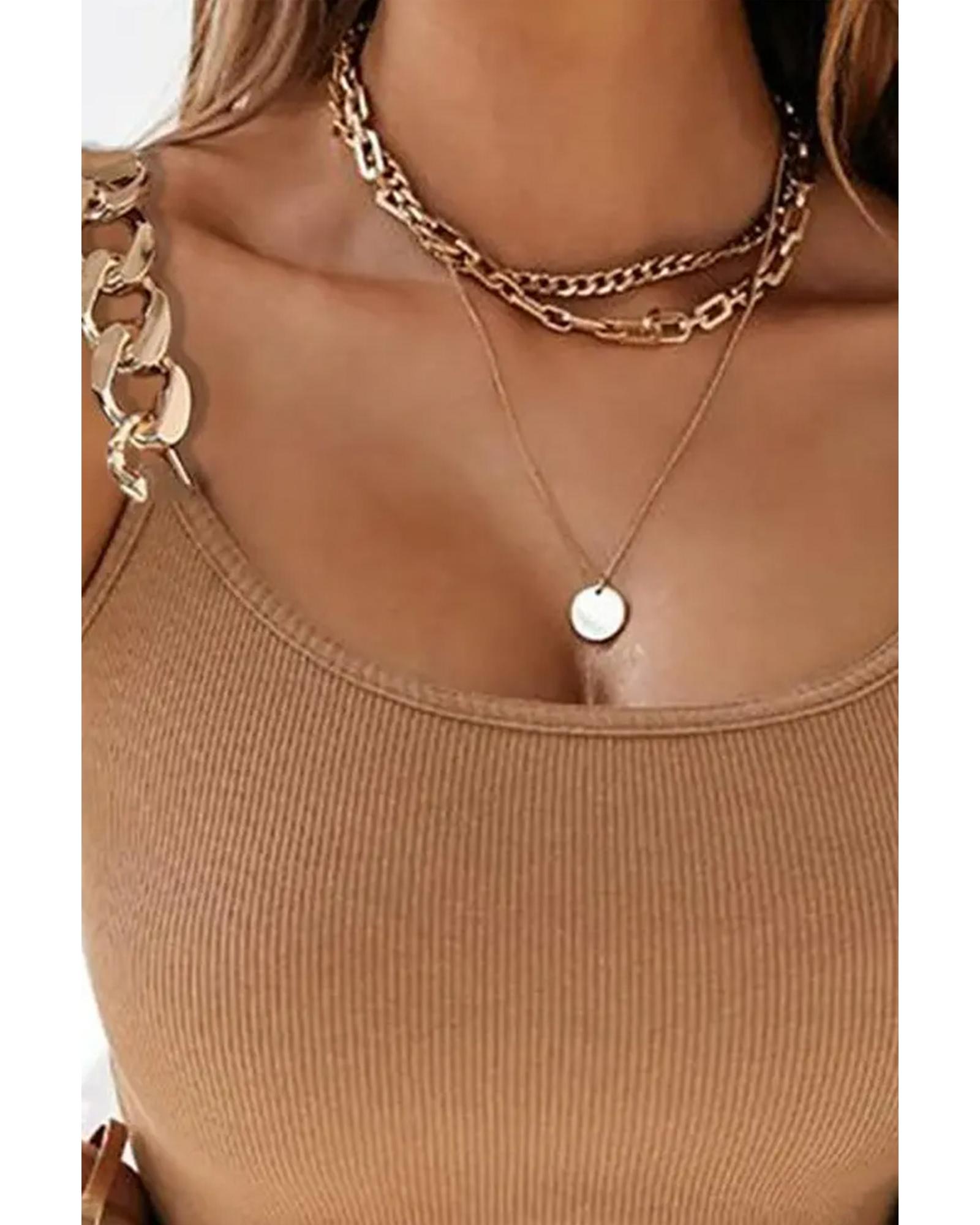 Brown Gold Chain Straps Rib Knit Tank Top - M