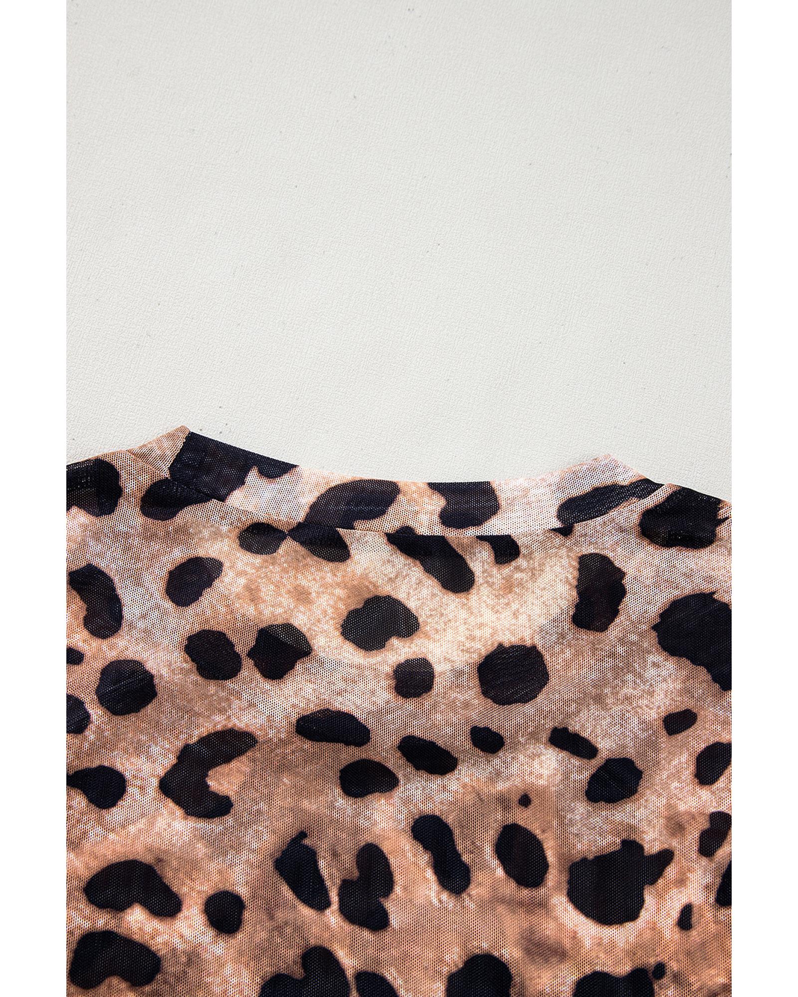 Brown Leopard Round Neck Long Sleeve Slim Top – S