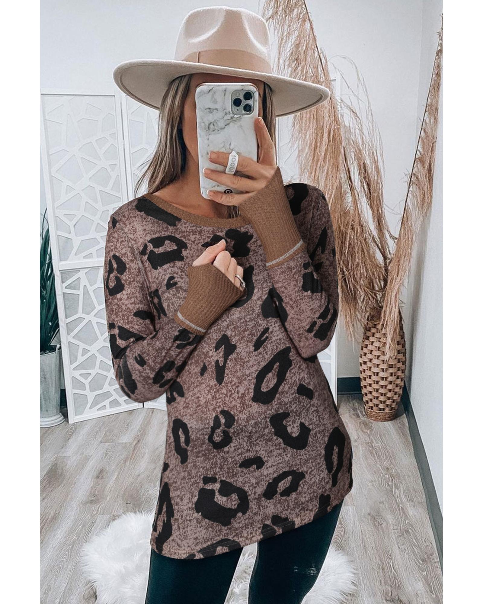 Brown Leopard Spling Thumbhole Long Sleeve Top – L