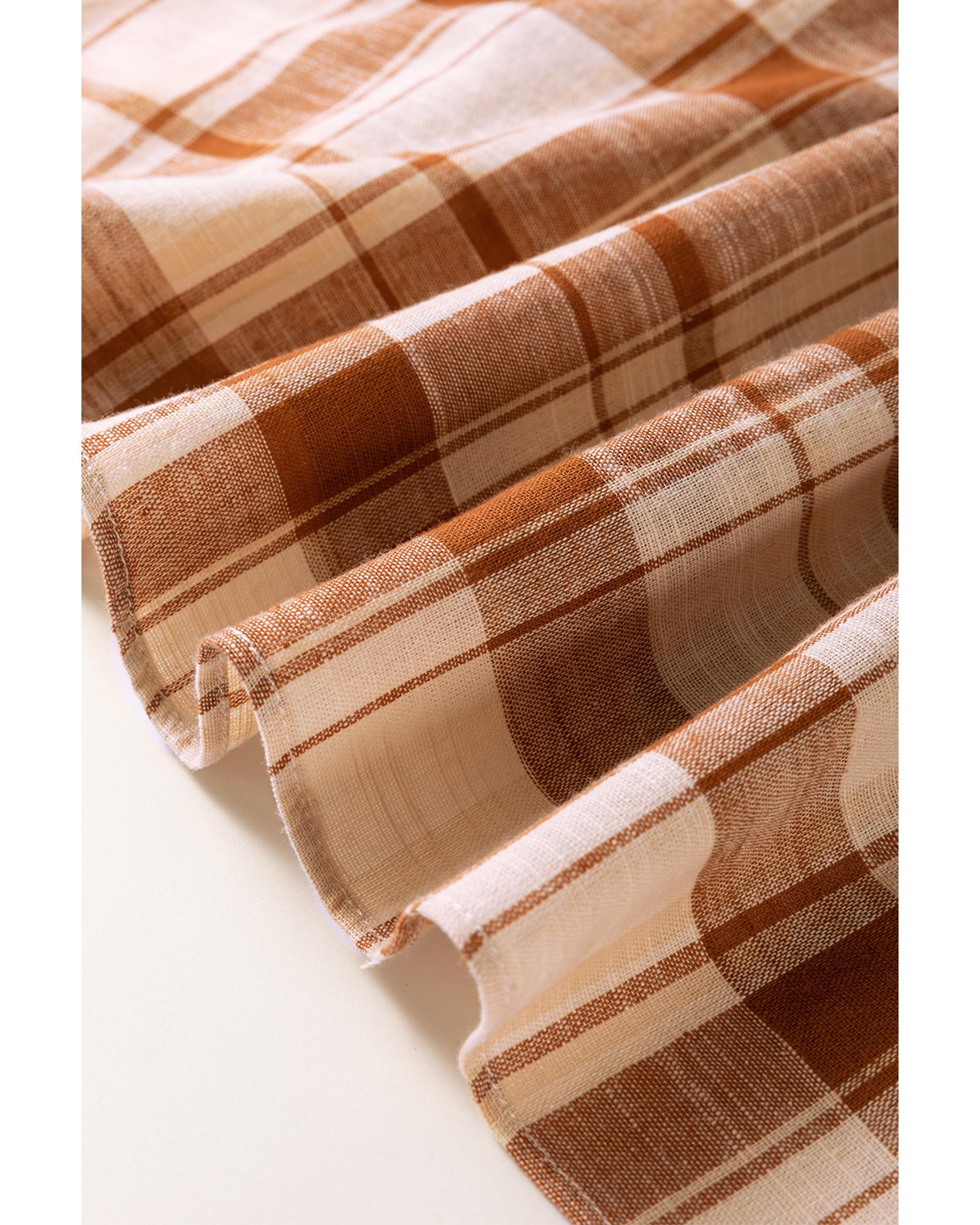 Brown Plaid Print Side Pockets Frilled Babydoll Mini Dress - XL