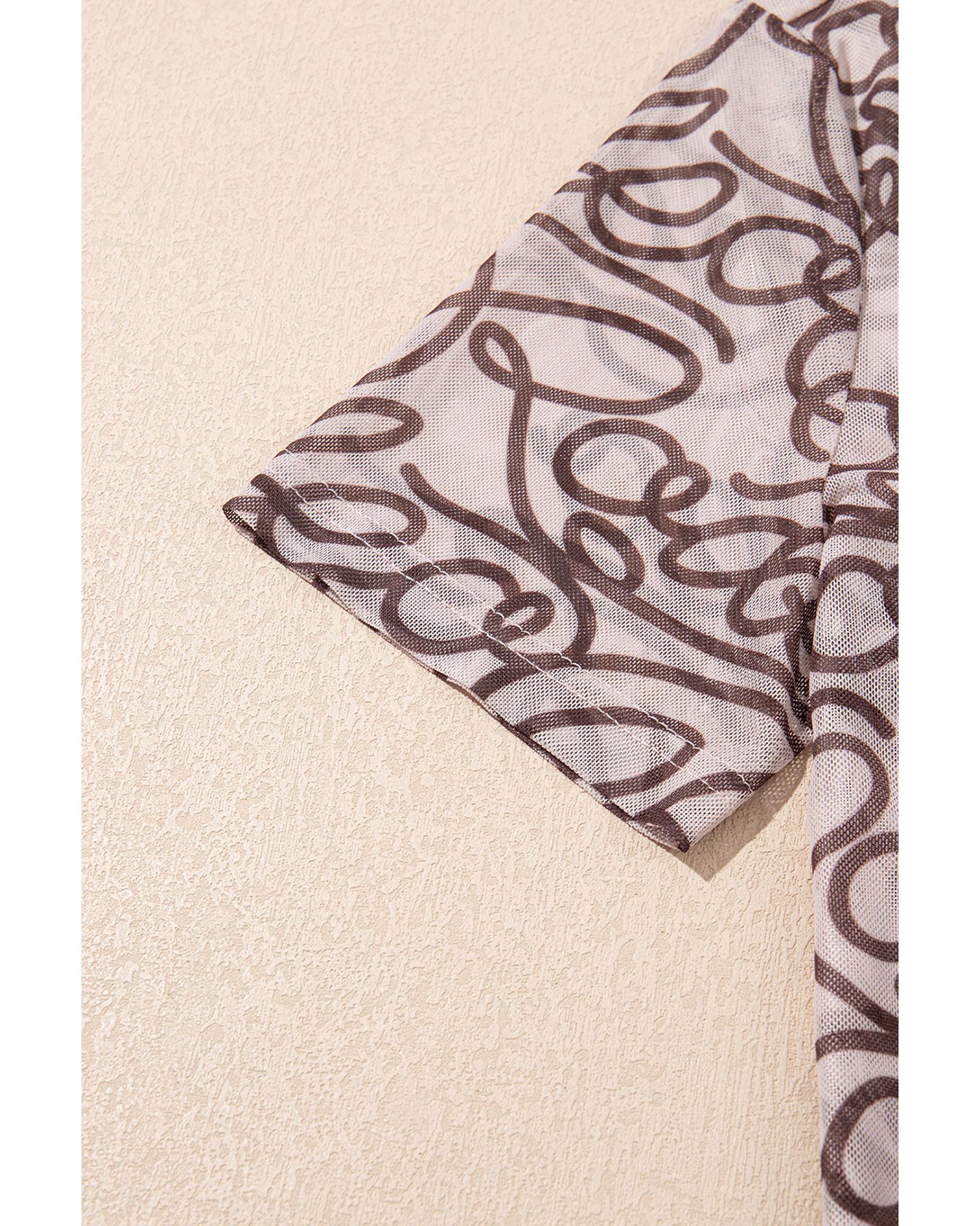 Brown Rodeo Print Round Neck Slim Fit Mesh T Shirt – XL