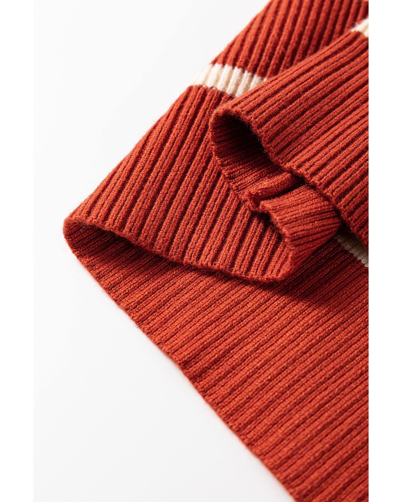 Brown Stripe Color Block Quarter Zip Collar Short Sleeve Sweater Dress – XL