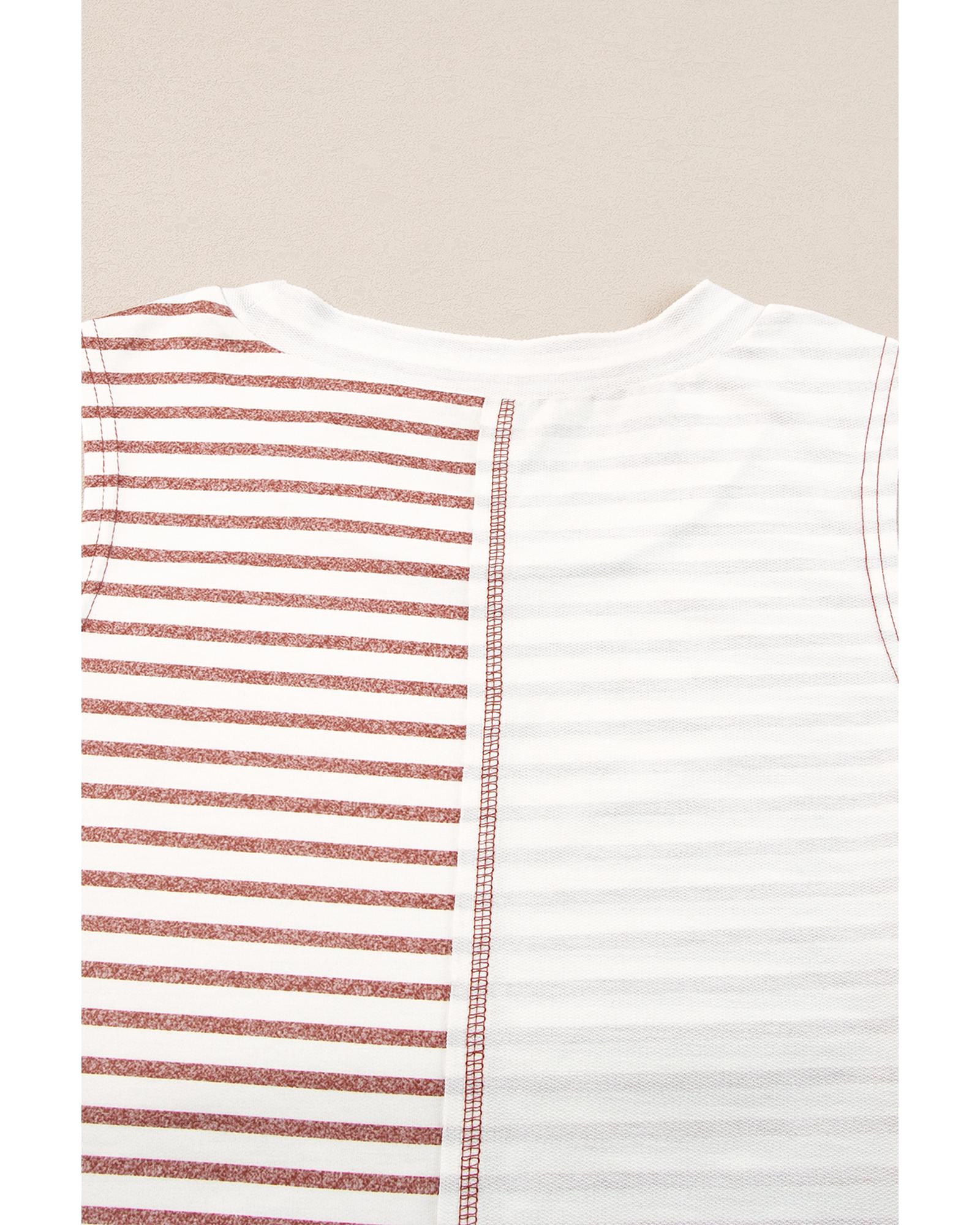 - Brown Stripe Colorblock Loose Tank Top