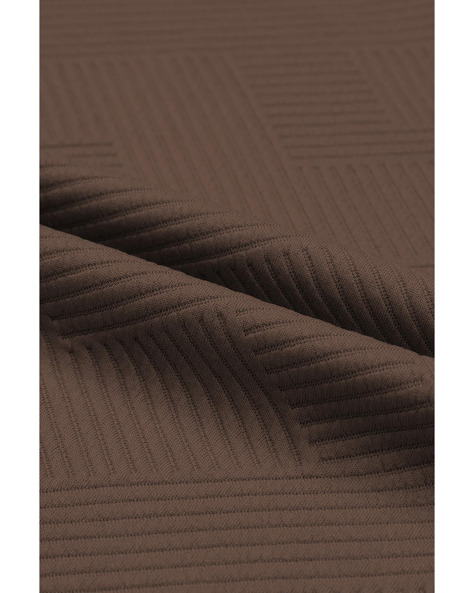 Brown Textured Loose Fit T Shirt and Drawstring Pants Set - 2XL