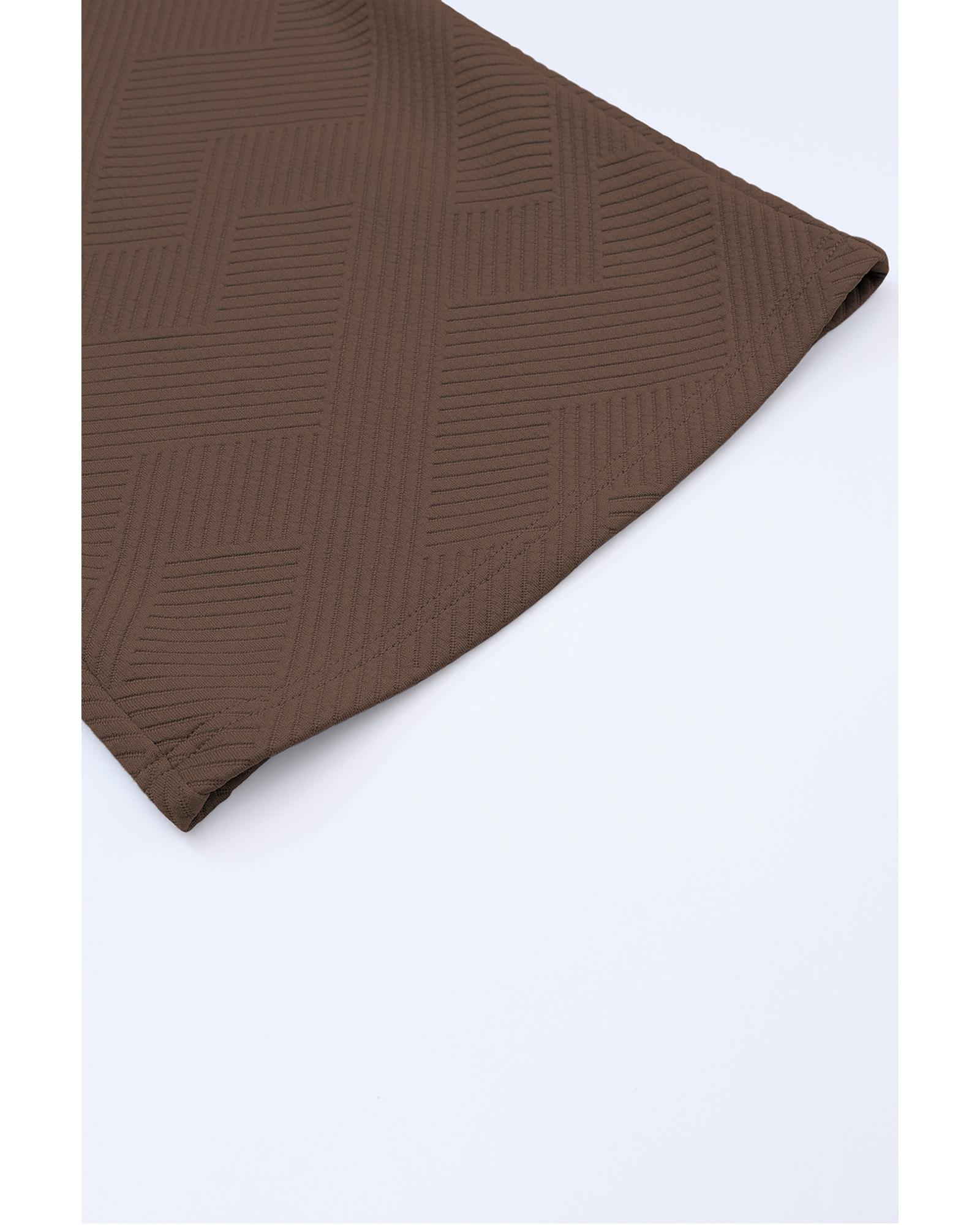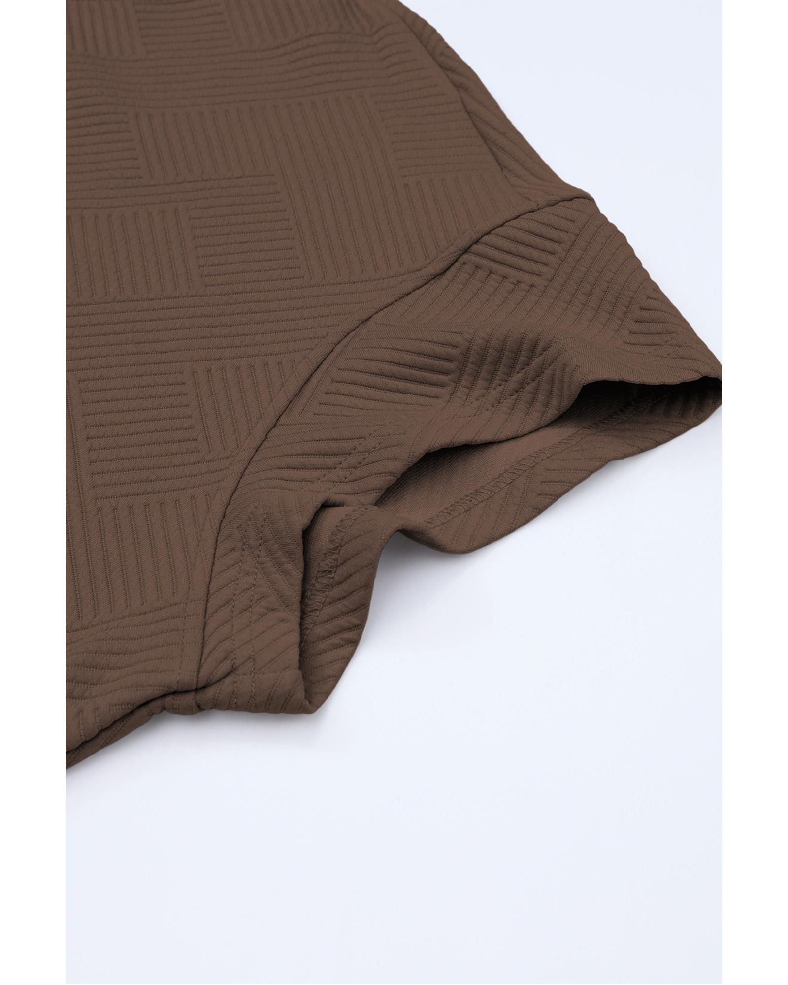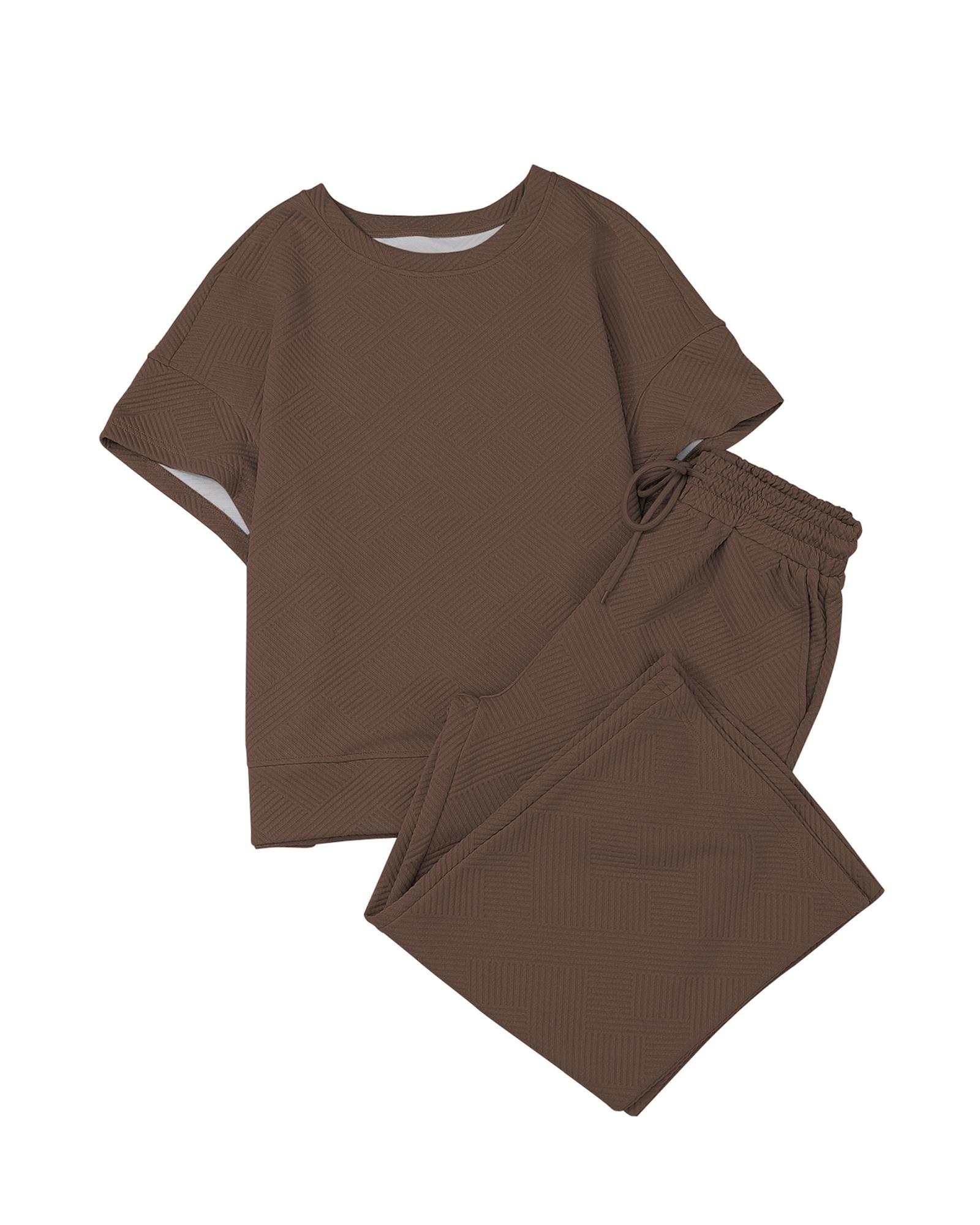 Brown Textured Loose Fit T Shirt and Drawstring Pants Set – M