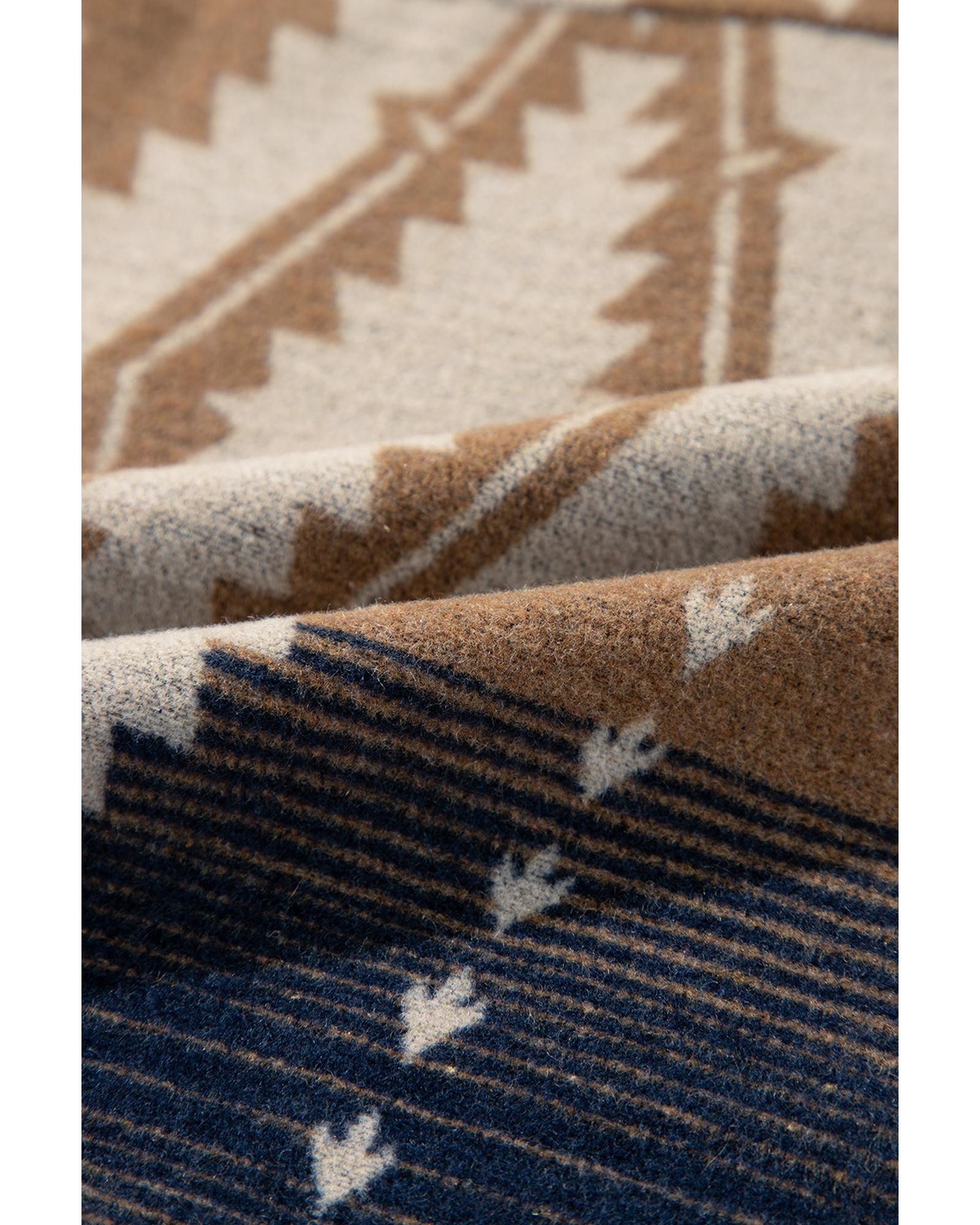 Brown Western Aztec Collared Button-up Sweatshirt – S