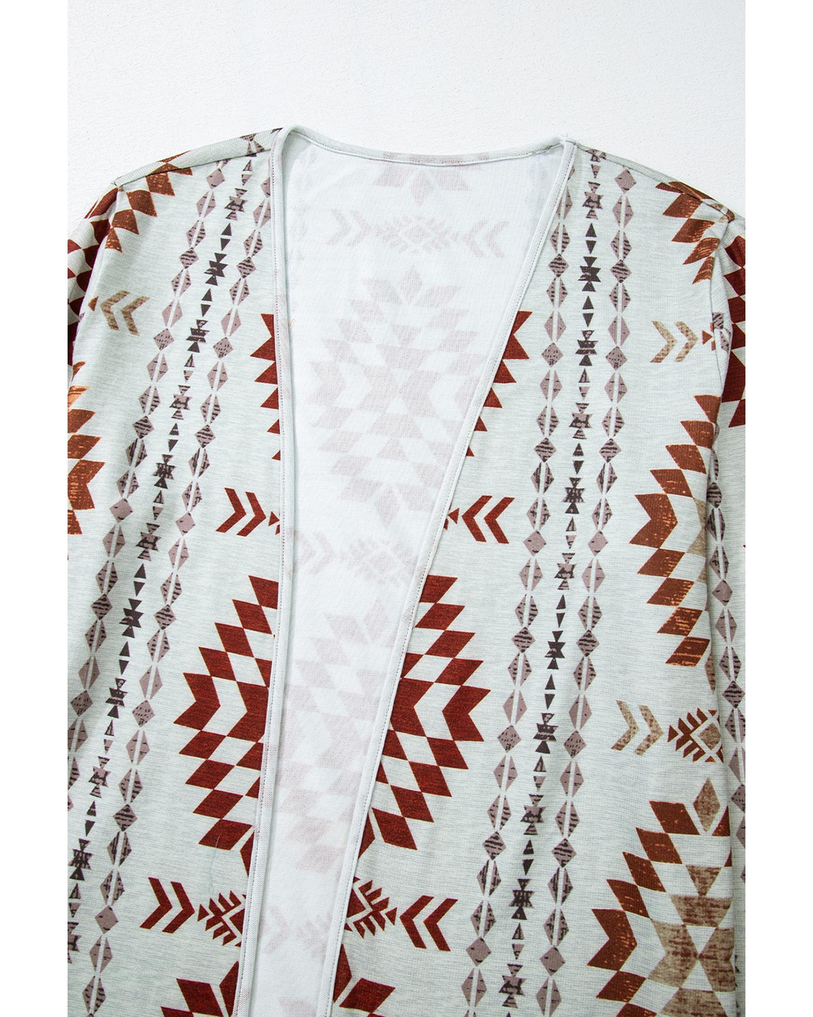Brown Western Aztec Printed Open Front Long Cardigan – S