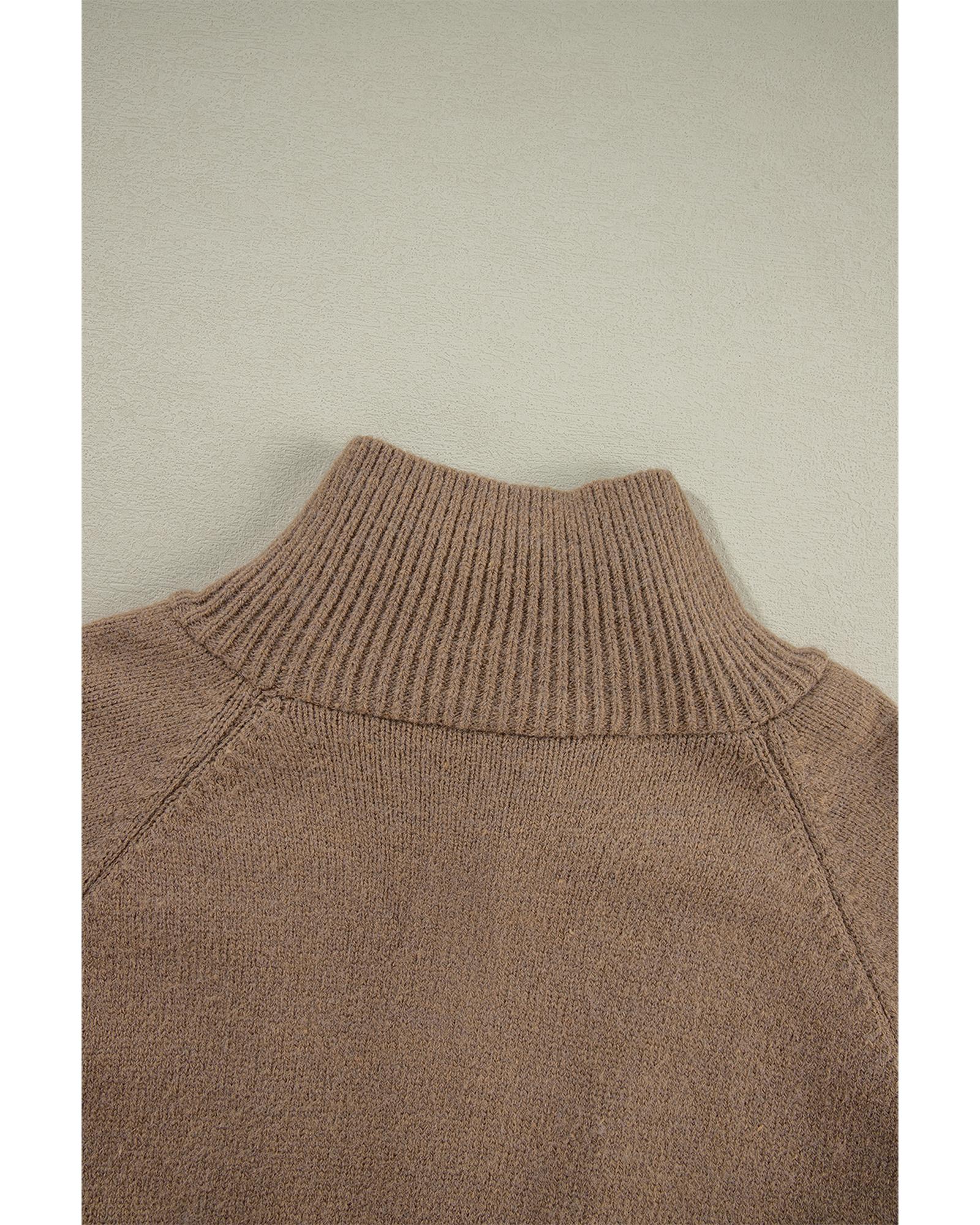 Brown Western Printed Ribbed Trim Collared Zip up Cardigan – L