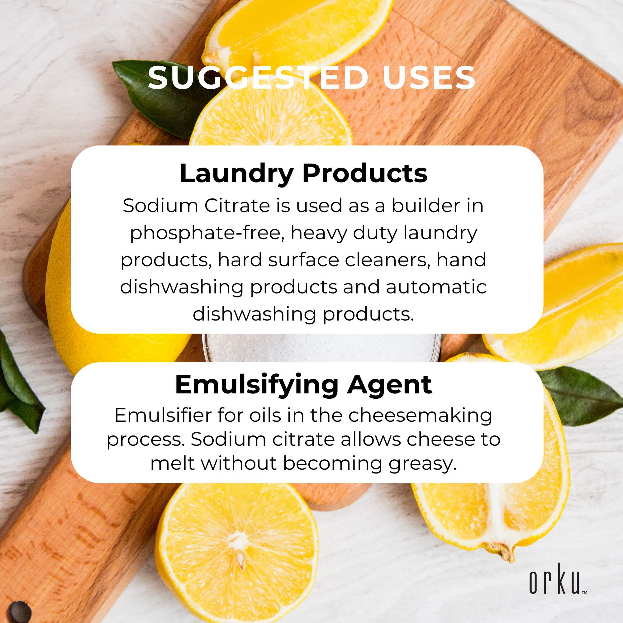 Sodium Citrate is used as a builder in phosphate-free, heavy duty laundry products, hard surface cleaners, hand dishwashing products and automatic dishwashing products.Â
