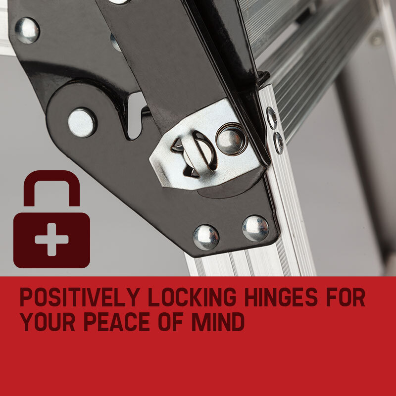 Made of strong anodised aluminum alloy, the platform features sturdy positive locking legs and skid resistant feet, for added safety and stability.