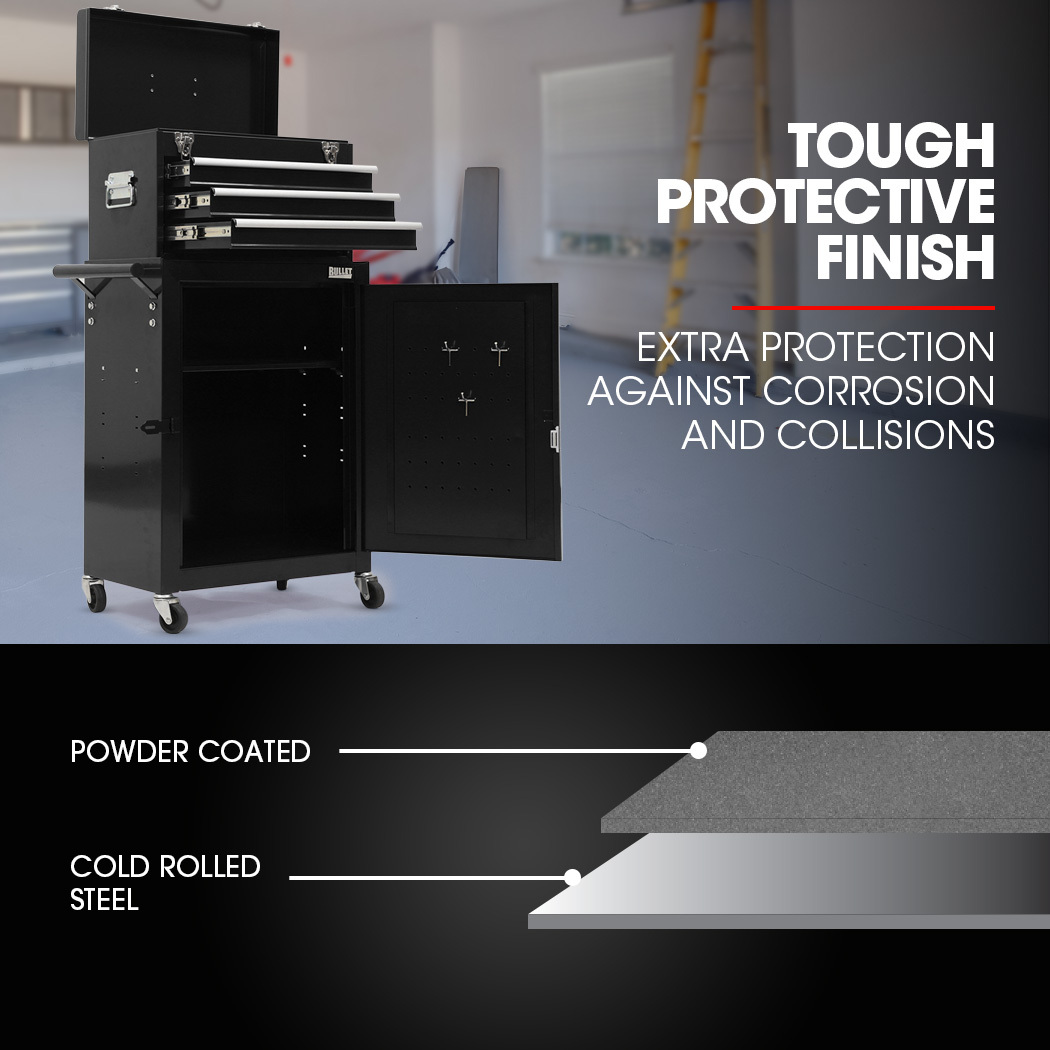 Bullet Pro 3 Drawer Tool Box Cabinet Trolley Storage, with 1-Door Toolbox Garage Organiser Set, Black