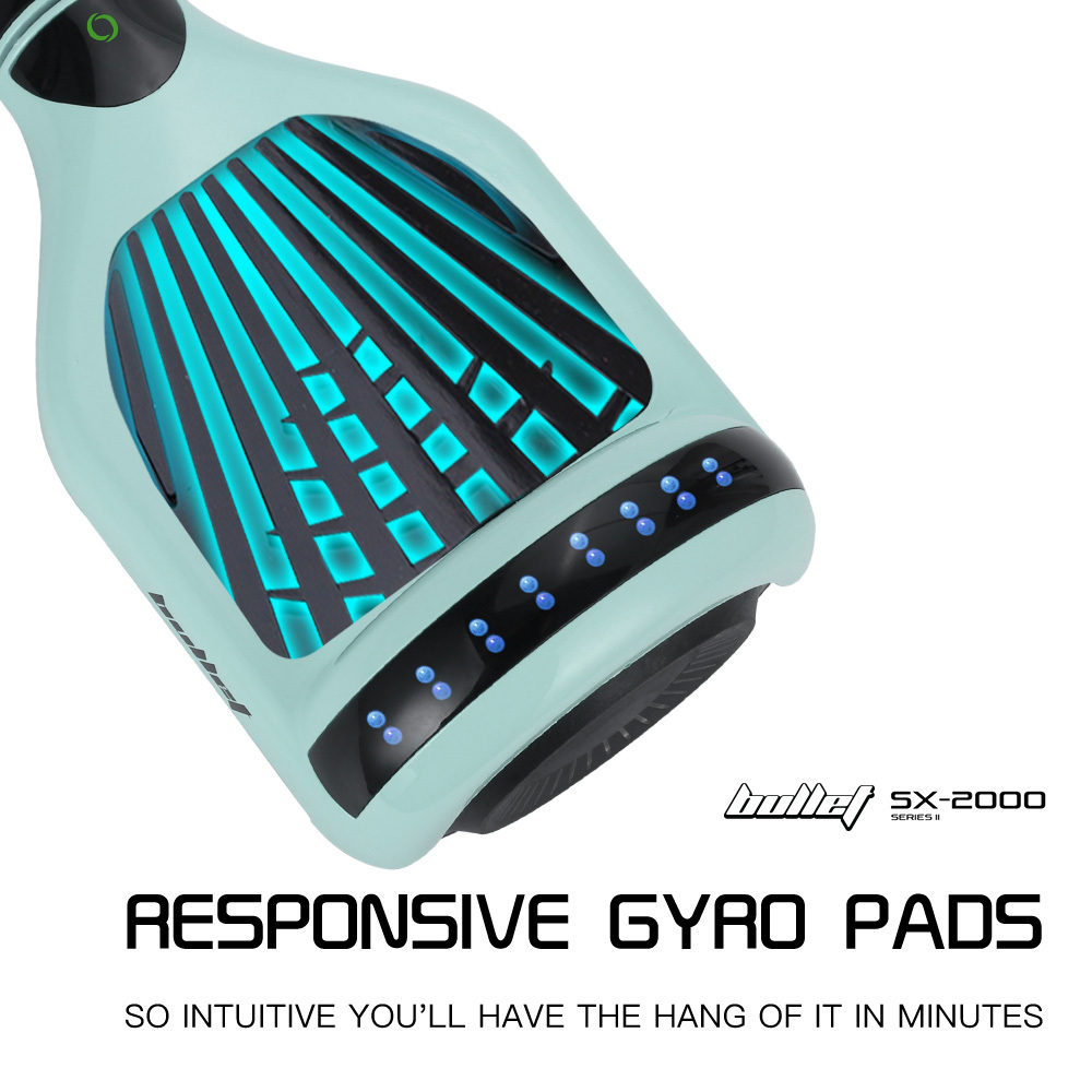 Experience a next level hoverboard with the state-of-the-art Bullet SX-2000. Its high-speed chipset reacts instantly to your bodys movements, offering highly responsive acceleration, turning, and reversing.