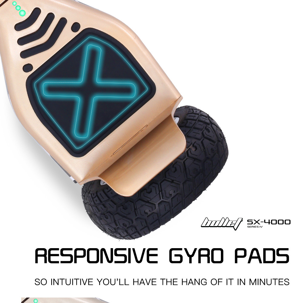 Experience a next level hoverboard with the state-of-the-art Bullet SX-4000. Its high-speed chipset reacts instantly to your bodys movements, offering highly responsive acceleration, turning, and reversing.