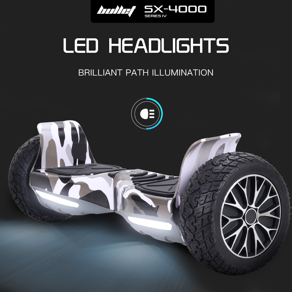 BULLET SX-4000 Hoverboard Scooter, 8.5″ Wheels, 700W Brushless, Superior Self Balancing System, UL Certified, LED Lights, Carry Bag, Camo