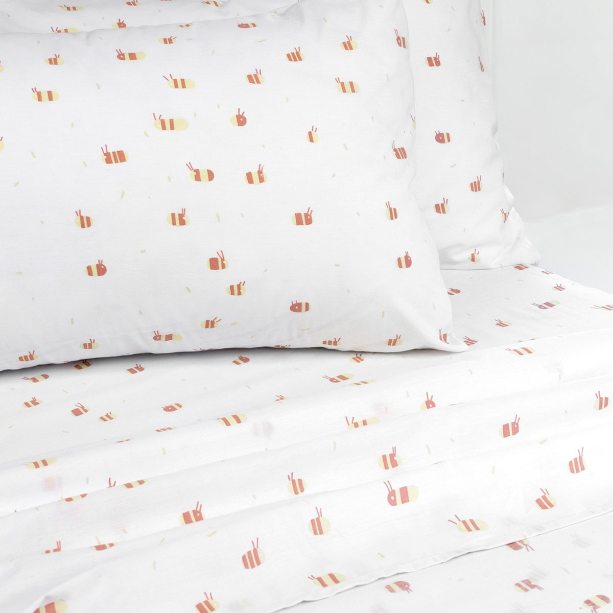 This adorable Bumble Multi Printed Sheet Set by Jelly Bean Kids will add a charming flair to your kid’s bedroom and will make bedtime fun again. It features a cute small bees design printed in white, brown, and yellow colour tones for a naturally charming and adorable bedroom design for your kids. It is made from polyester cotton blend fabric that is durable and soft that will surely give comfort to your little ones.